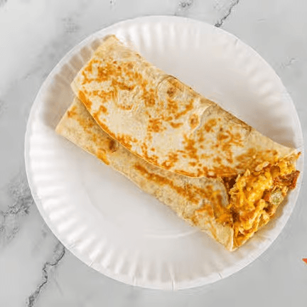 Halal chicken sausage, scrambled eggs, fresh veggies in tortilla