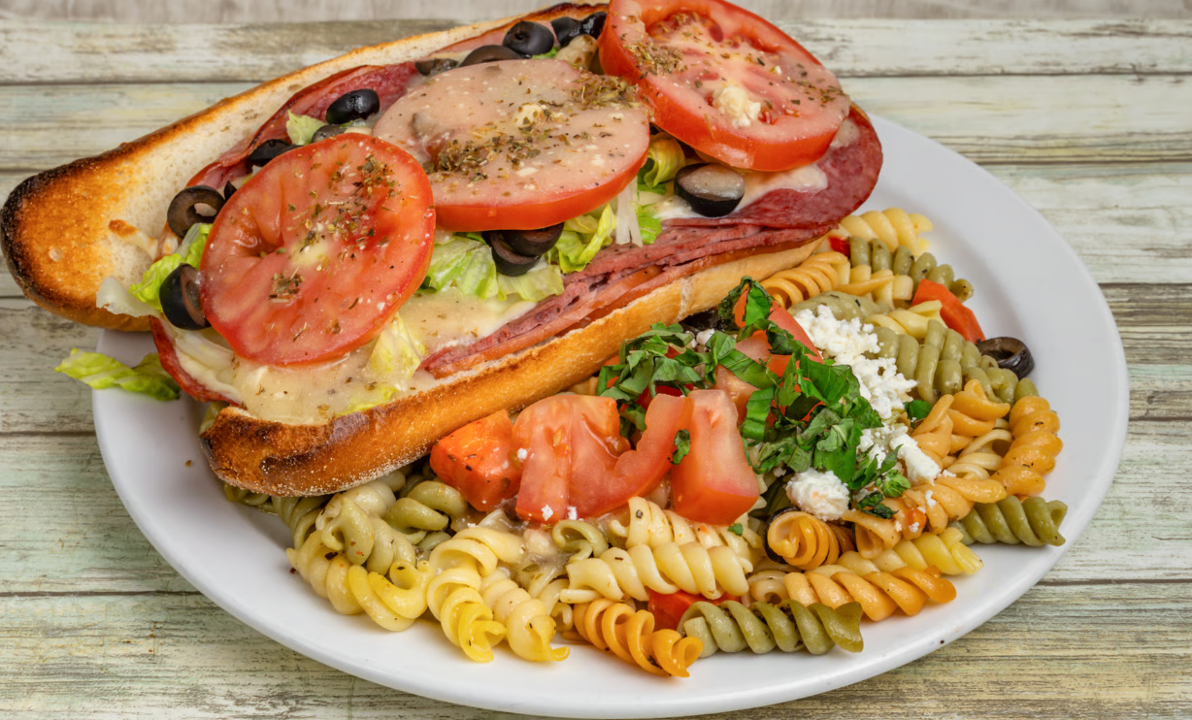 Salami, ham, mortadella, black olives, lettuce, tomatoes & melted mozzarella.