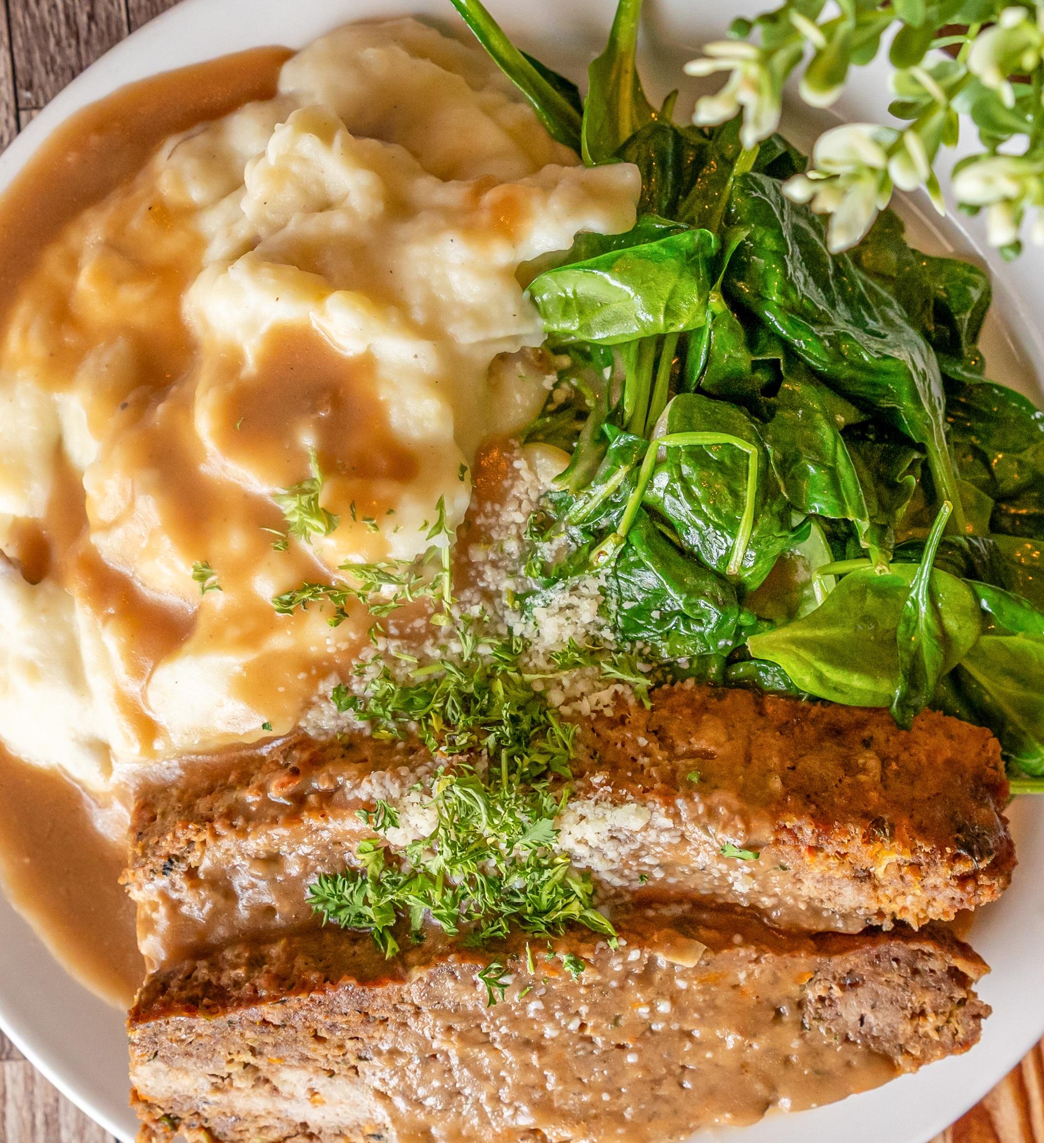 Ground meat prepared with bread crumbs, minced onion, and Italian seasoning.