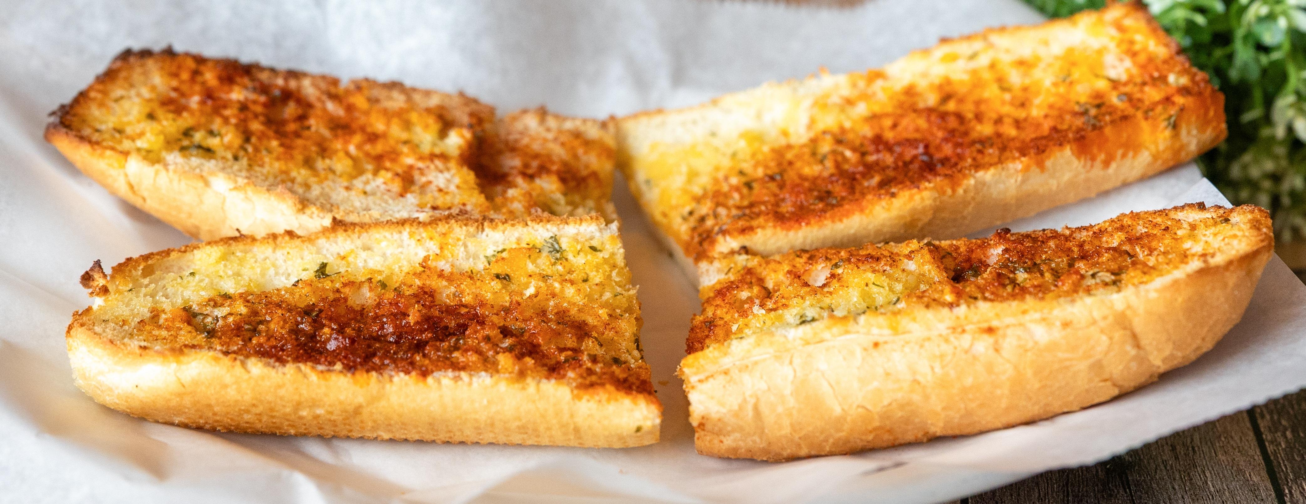 Bread, topped with garlic, herb seasoning, baked to perfection.