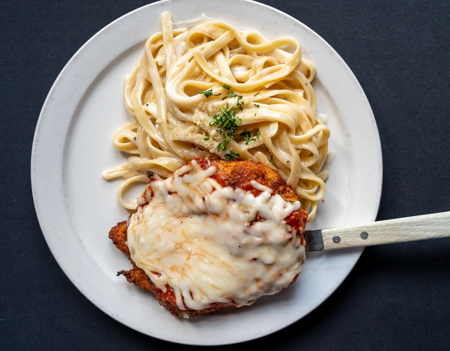 Marinara sauce, mozzarella, fettuccine alfredo.