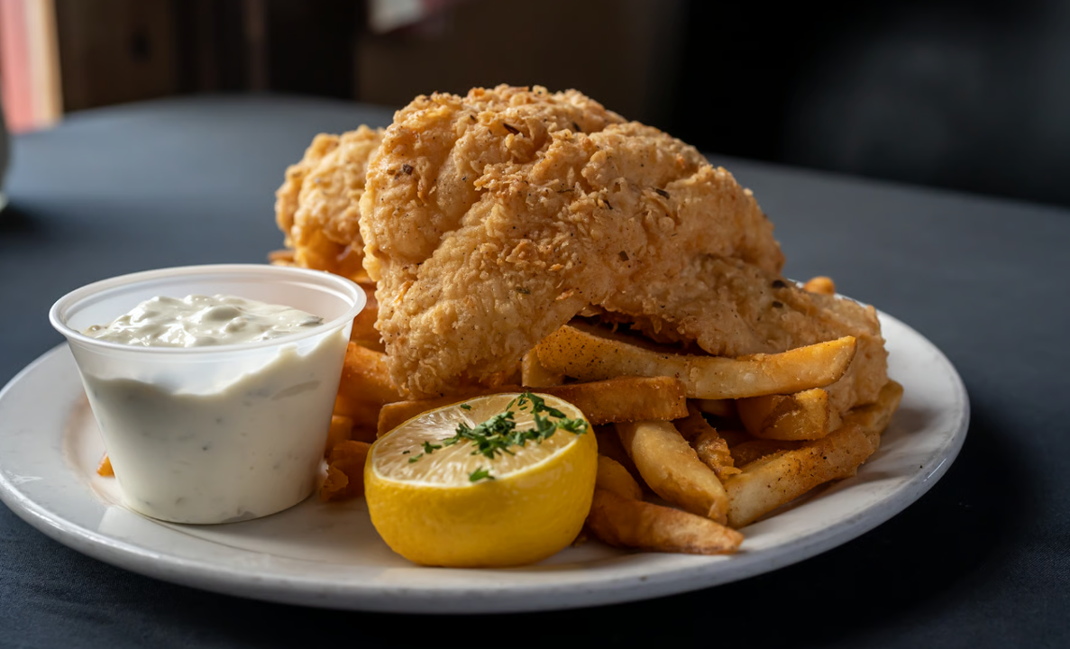7oz Fried Catfish Filets with Fries or pasta salad.
