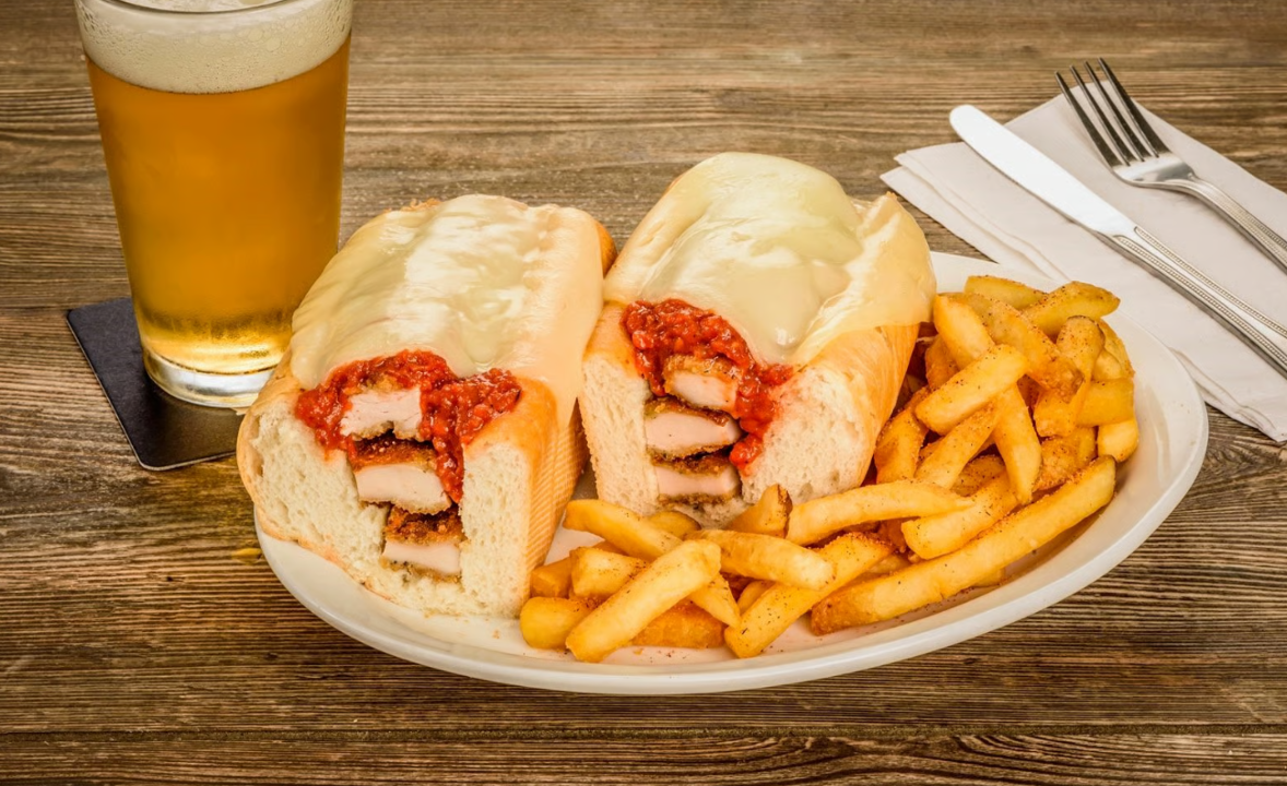 Chicken Parm, marinara sauce, & mozzarella cheeses.
