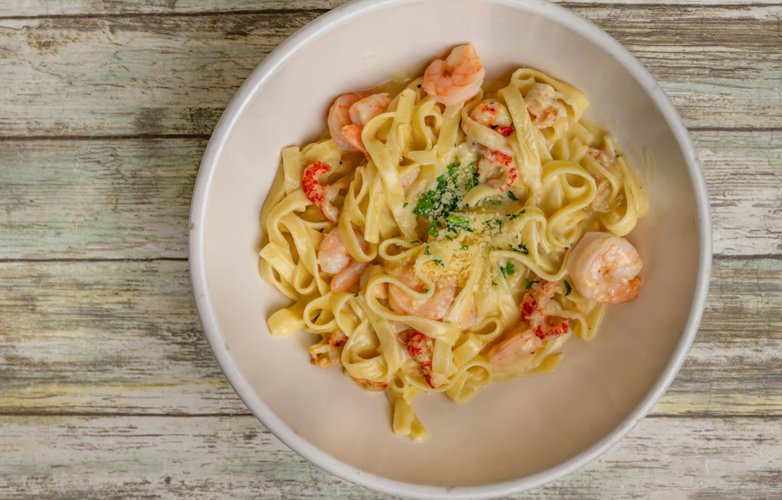 Shrimp & crawfish tails, fettuccine, alfredo sauce.