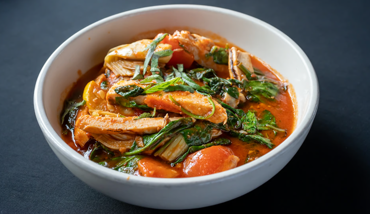 Angel hair, grilled chicken, Roma tomatoes, garlic, fresh basil, spinach, artichoke hearts, spicy capellini sauce.