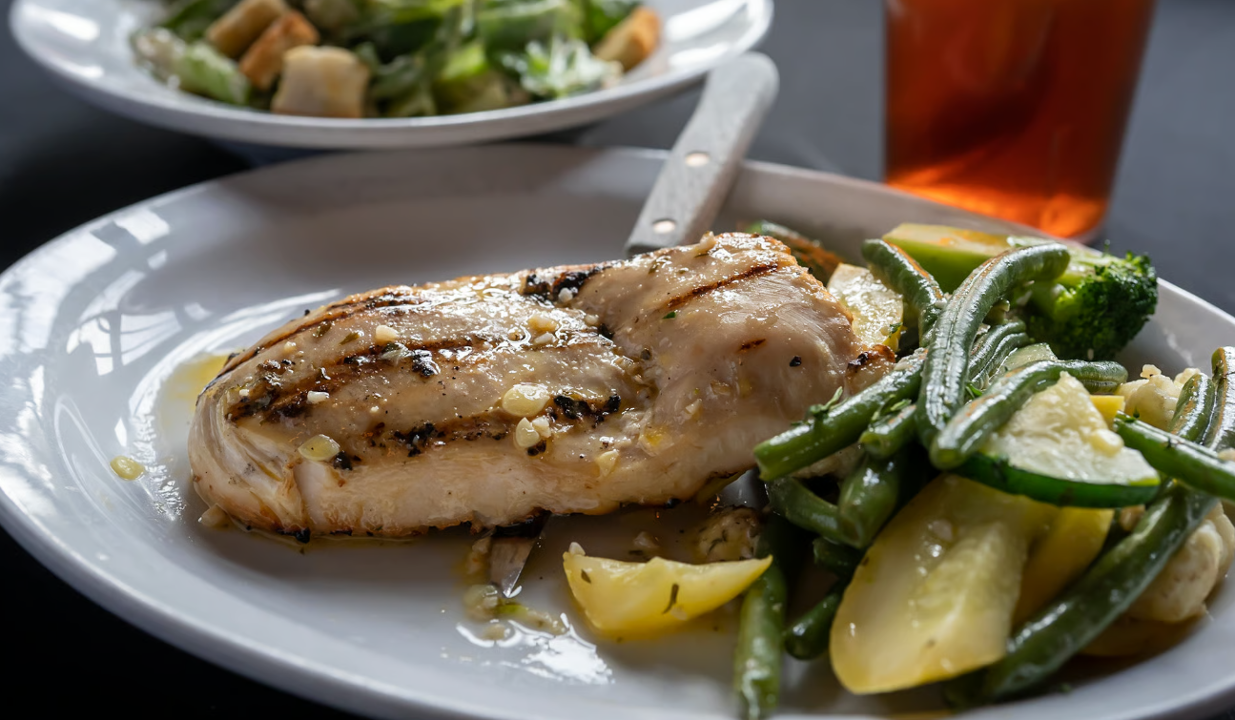 Grilled chicken, garlic butter, sauteed vegetables or sauteed spinach.