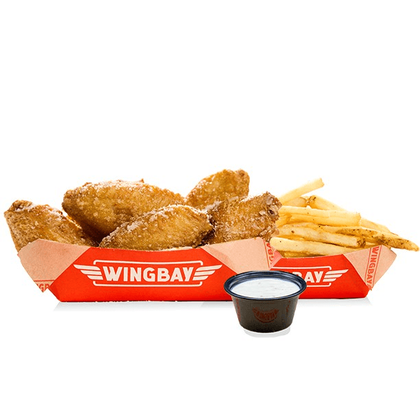 6 boneless or classic (bone-in) wings with up to 2 flavors, regular fries or veggie sticks, and 1 dip