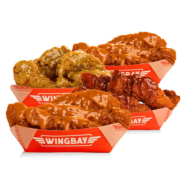 24 boneless or classic (bone-in) wings with up to 3 flavors, and 3 dips.