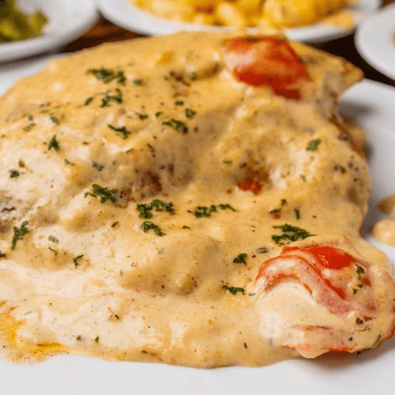 Savor a true Southern classic with our Southern-style smothered chicken. We take tender, well-seasoned chicken and slow-simmer it in our rich, velvety "40-weight" brown gravy until it’s fall-off-the-bone tender. This traditional smothered chicken is the ultimate comfort food, perfectly seasoned to bring you the authentic taste of home.