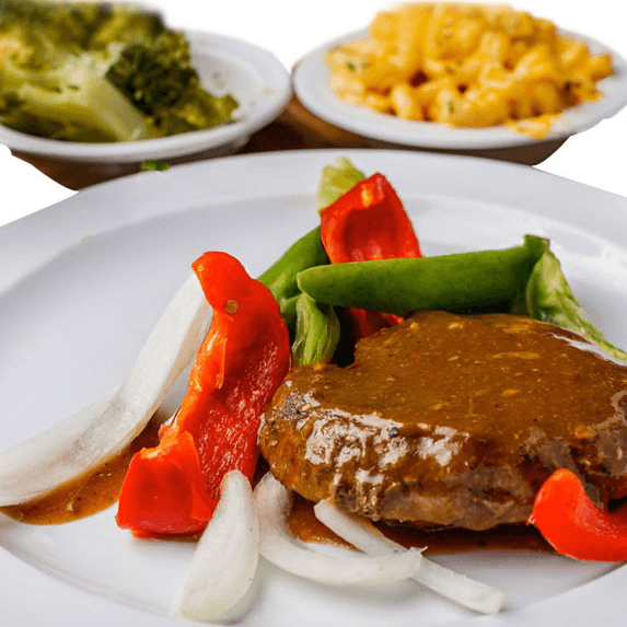 Treat yourself to a Mikki’s Soul Food Cafe favorite—our Smothered Hamburger Pepper Steak. We start with a juicy, high-quality ground beef patty, seasoned with a rich pepper blend and grilled to perfection. It’s then generously smothered in our signature, slow-simmered brown gravy with sautéed onions and bell peppers.