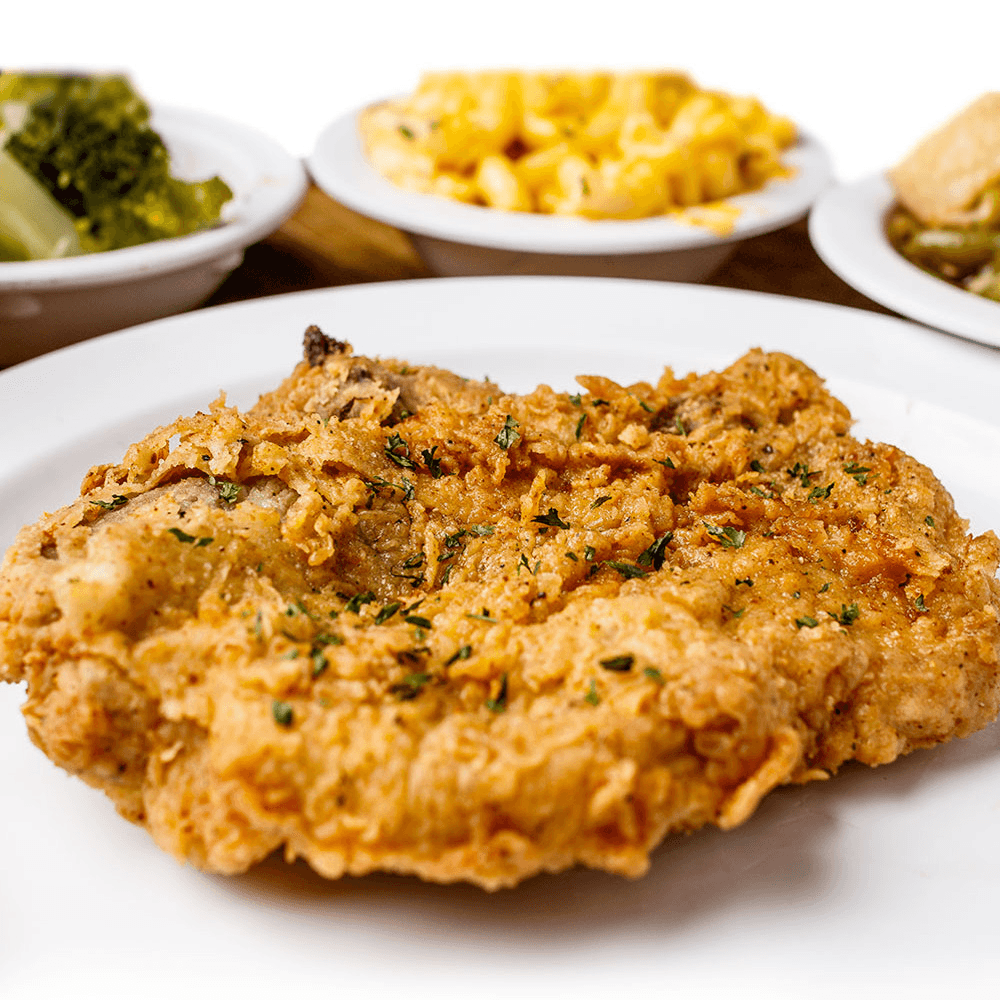 Sink your teeth into the best fried pork chops in Houston. Our southern fried pork chops are center-cut, seasoned with our signature soul food spice blend, and hand-breaded for a perfect golden crunch. Juicy on the inside and crispy on the outside, this soul food pork chop dinner is a timeless comfort food classic that tastes just like a Sunday afternoon at home.