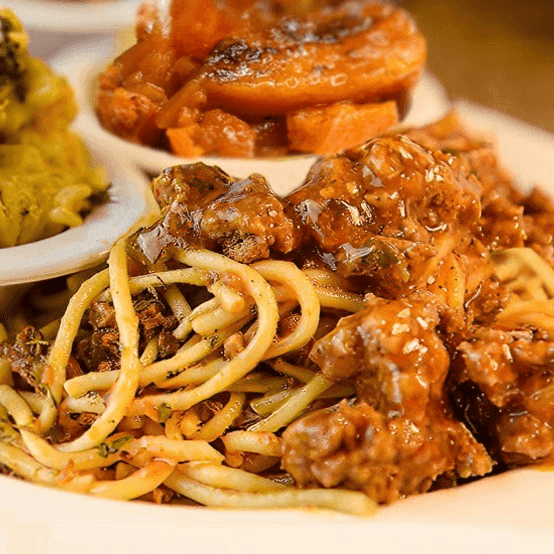 Our ground beef spaghetti is the definition of hearty soul food. We slow-simmer lean beef in a seasoned, homemade meat sauce and serve it over tender pasta for that classic comfort food taste Houston loves. Pair this savory spaghetti and meat sauce with our famous sides for a filling, Southern-style dinner.