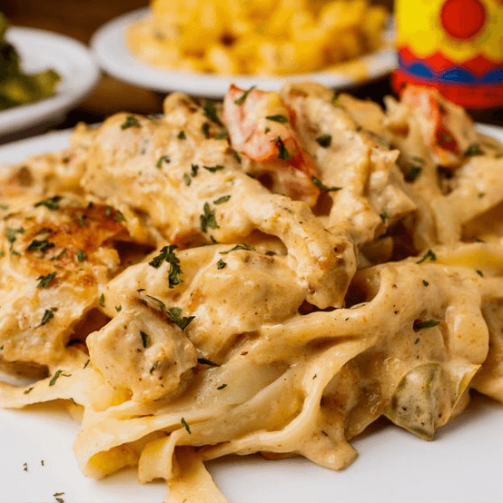 Whether you're a fan of seafood, poultry, or simply crave a hearty pasta dish, our chicken and shrimp fettuccine is the perfect choice. It is a harmonious blend of succulent grilled chicken, plump shrimp, and creamy fettuccine noodles, all brought together in a luscious sauce.