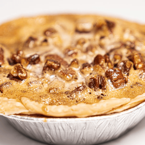 A personal-sized Southern classic. Our individual round pecan pie features a rich, buttery filling and a generous layer of crunchy pecans, all tucked into a flaky, golden-brown crust. It’s a little slice of heaven just for you.