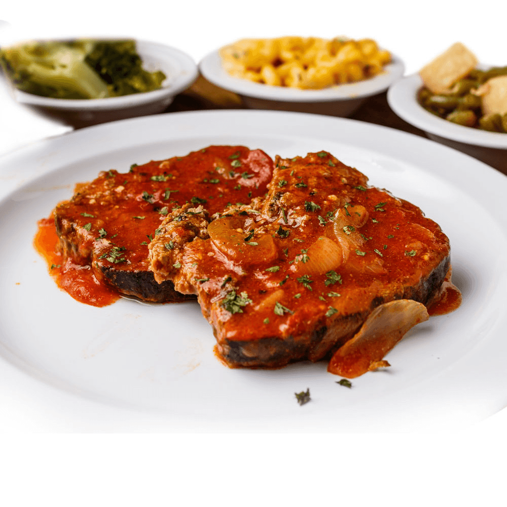 For the best smothered pork chops in Houston, look no further than Mikki’s Soul Food Cafe. Our southern-style pork chops are seasoned, seared, and slow-simmered in our signature, rich brown gravy with onions. These tender smothered chops are the ultimate soul food comfort food. Pair this savory pork chop dinner with rice and homemade sides.