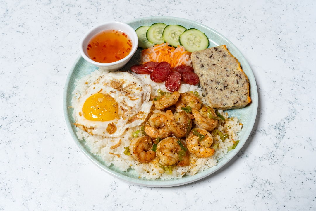 Honey lemongrass shrimp, shrimp & pork eggroll, vermicelli noodles, veggies and a side of chicken broth. *This dish contains peanuts.