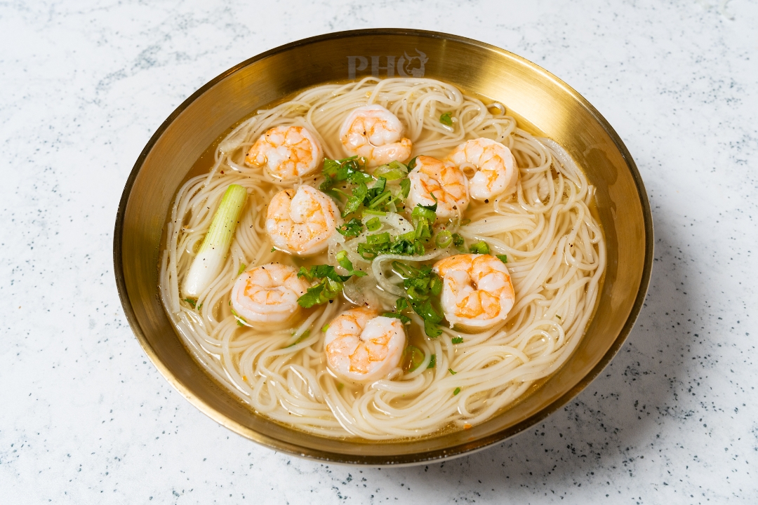 Beef broth, shrimp *All pho bowls come with green onions, yellow onions, and cilantro. Bean sprouts, basil, lime, and jalapenos will be on the side.