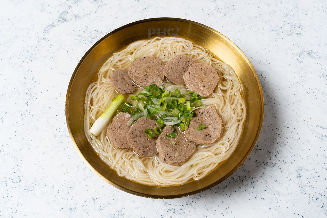 Beef broth, beef meatballs *All pho bowls come with green onions, yellow onions, and cilantro. Bean sprouts, basil, lime, and jalapenos will be on the side.