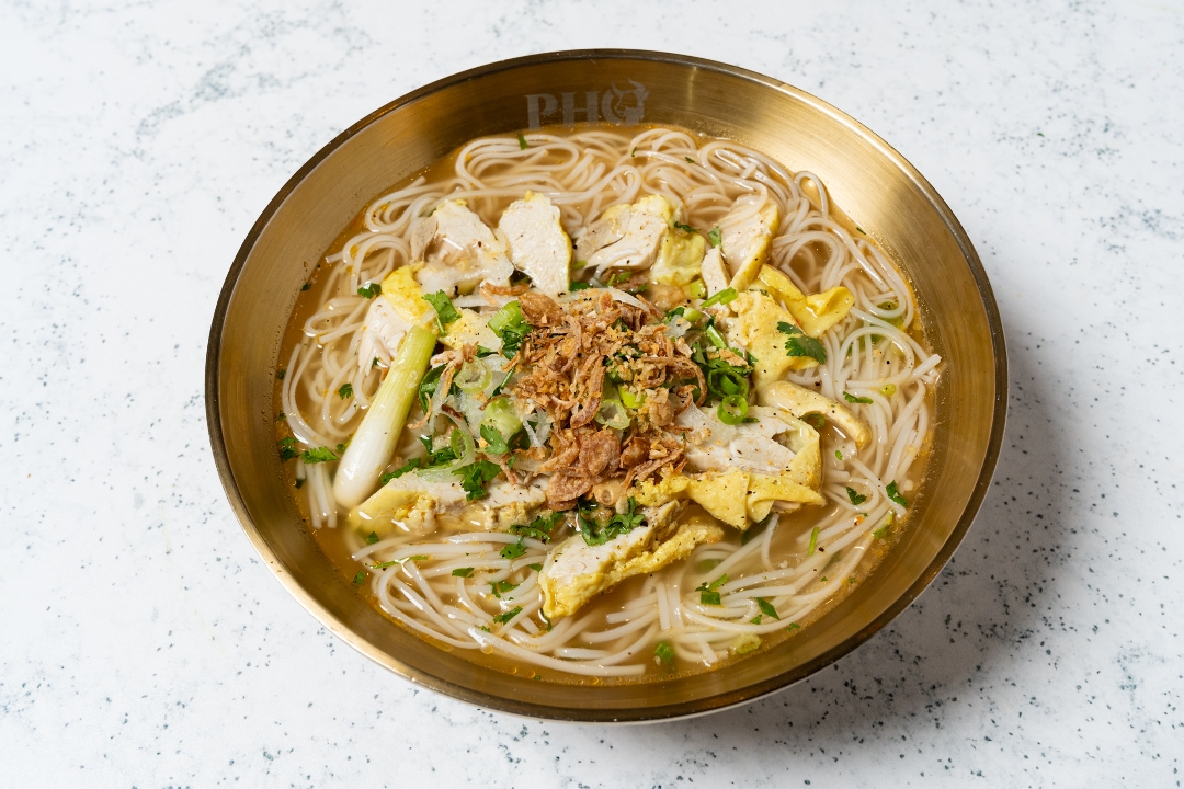 Chicken broth, chicken (dark meat, skin on) *All pho bowls come with green onions, yellow onions, and cilantro. Bean sprouts, basil, lime, and jalapenos will be on the side.