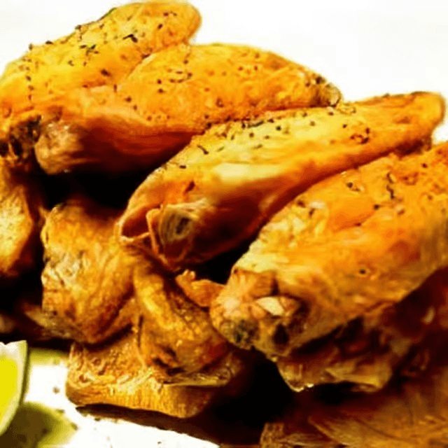 Delicious fried chicken winglets tossed in tangy lemon pepper spice blend and served with seasoned fries or onion rings. With your choice of dipping sauce.
