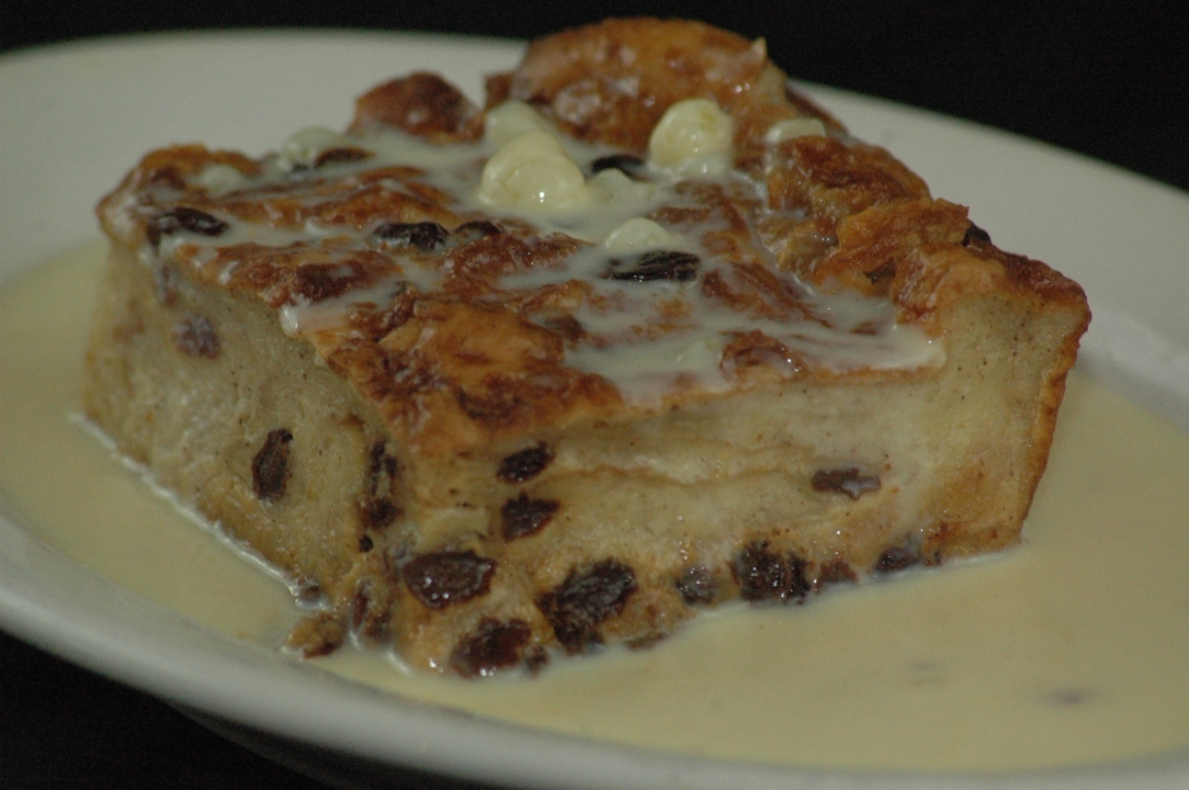 Bourbon bread pudding: A sizable pudding baked like your grandmother used to make on Sundays. We top it with a warm Bourbon Sauce.