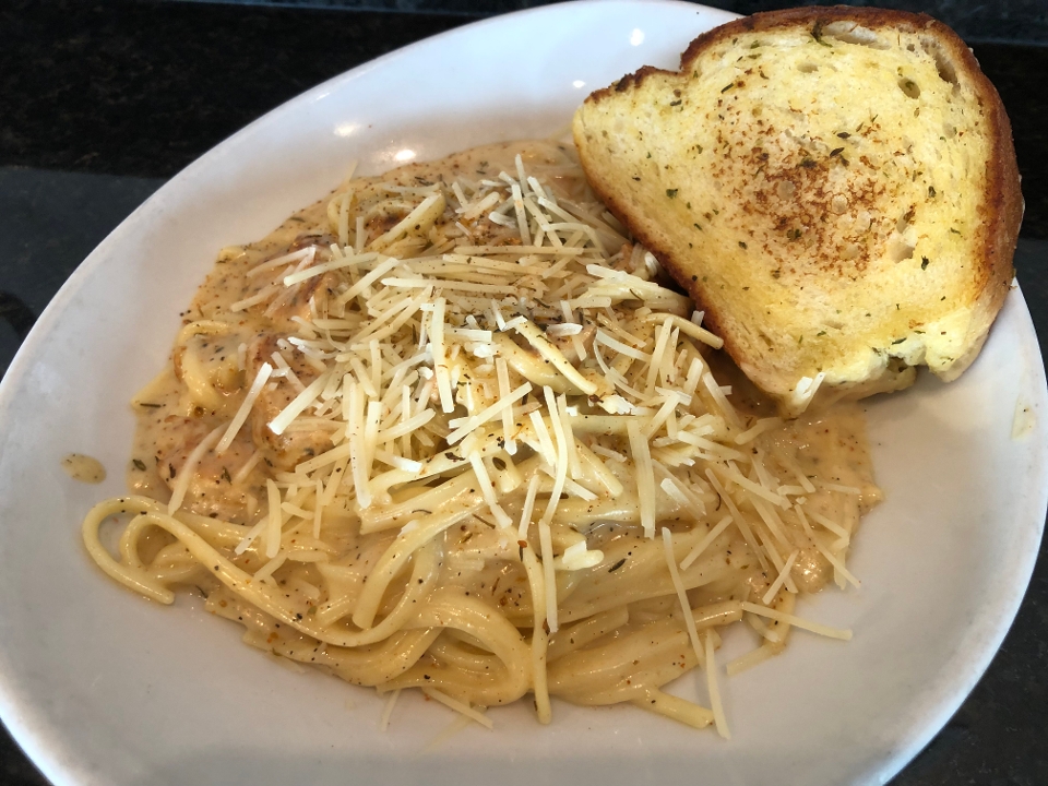 Sautéed shrimp with our famous homemade cream sauce in linguine pasta