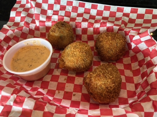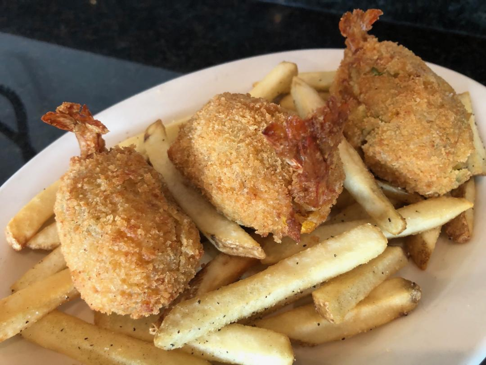 (6) Hand-breaded shrimp, served with (2) Boudin Balls and a side