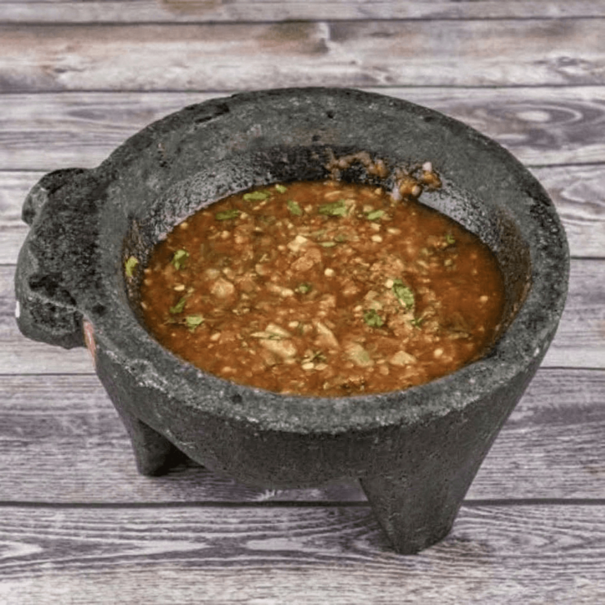 Our specialty! Baby goat on a sizzling plate served with charros, rice, pico de gallo, and tortillas