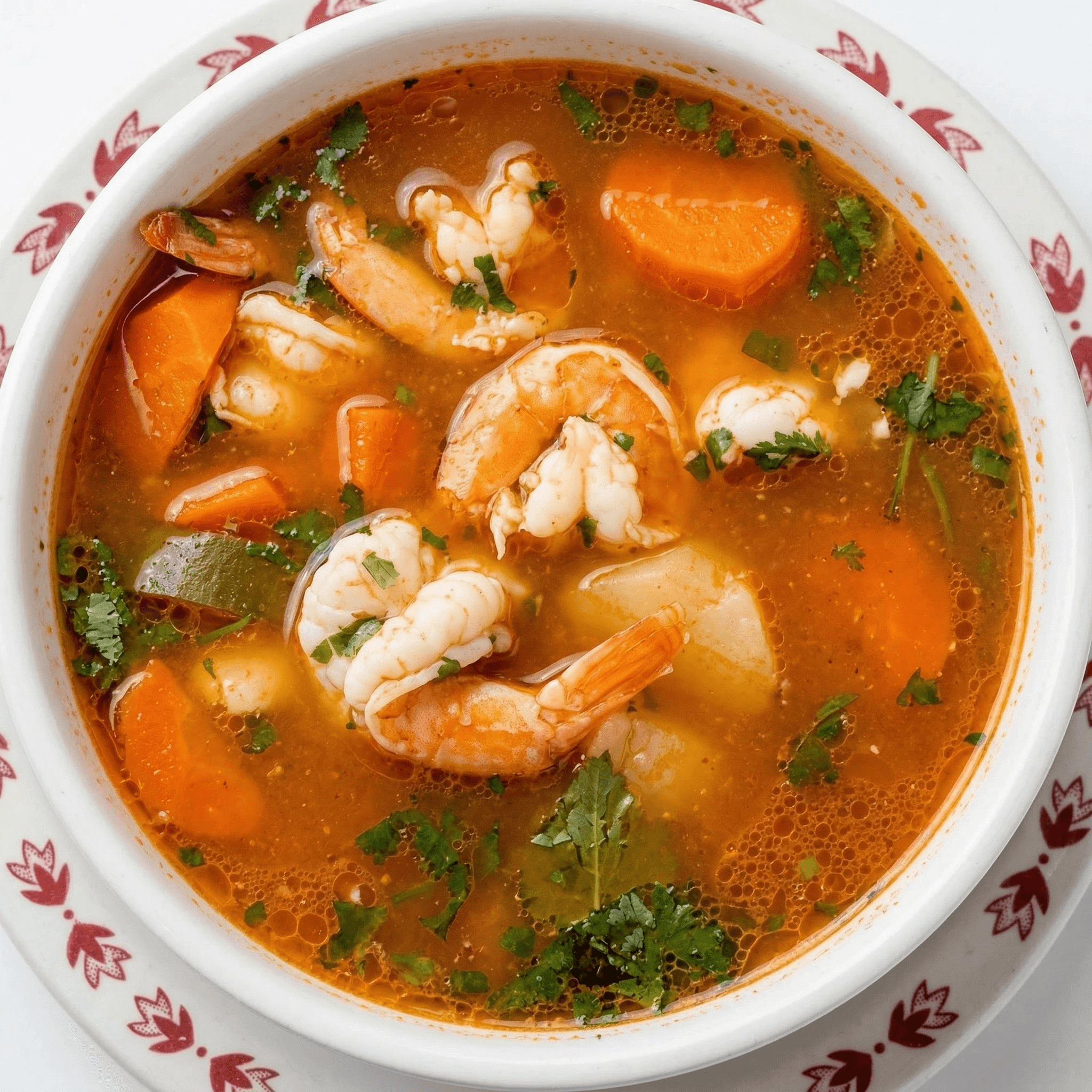 8 shrimp sautéed in garlic butter with onions and potatoes served with rice and tortillas