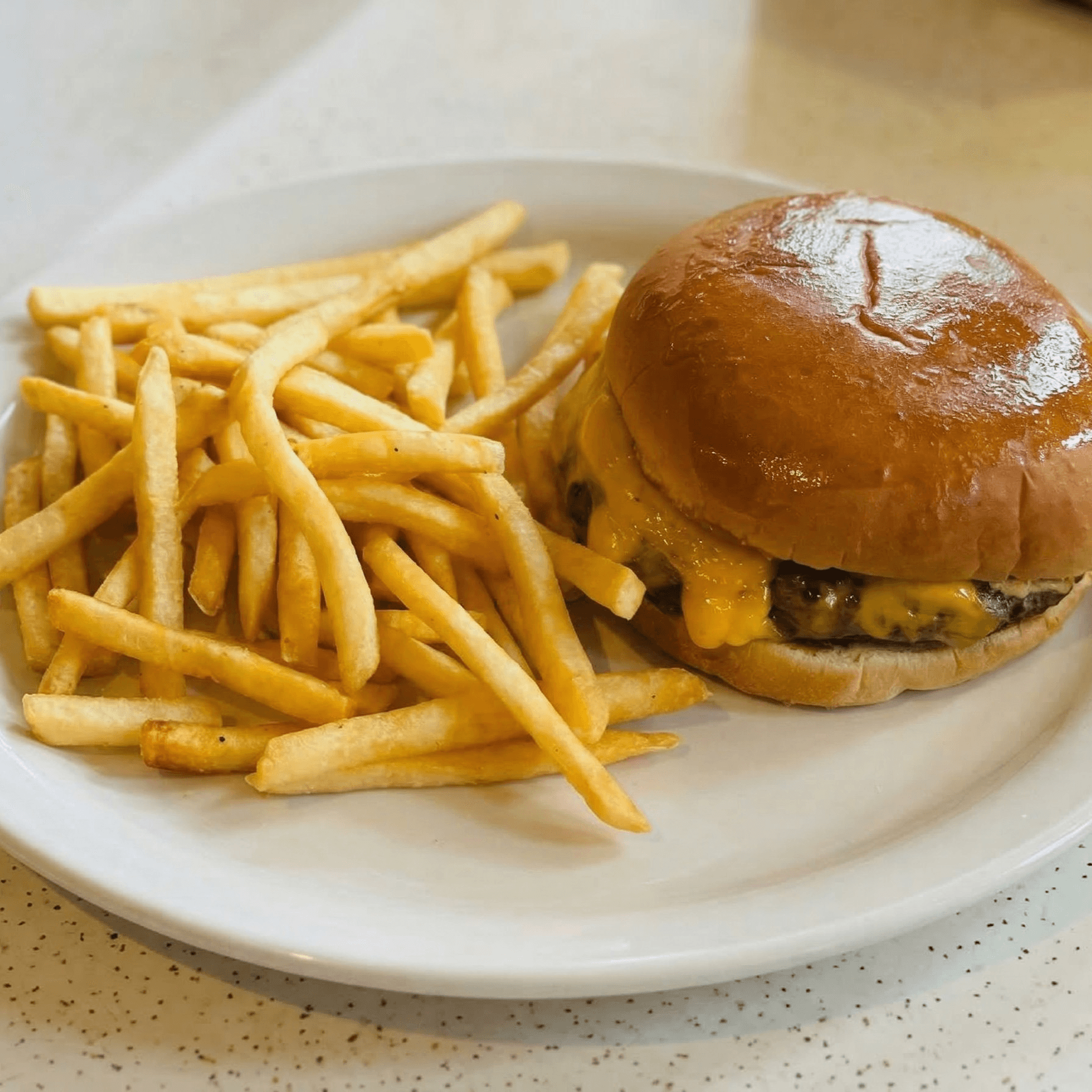 Please allow 15-20 minutes to prepare. Ground meat patty mixed with diced onions, jalapeños, cheese, lettuce, and tomato served with french fries