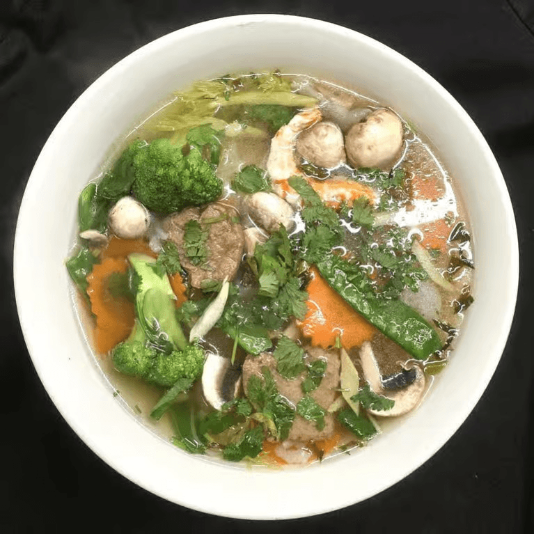 Comes with vermicelli or steamed rice. Lẩu quan âm & bún, an với bún hoặc cơm trắng