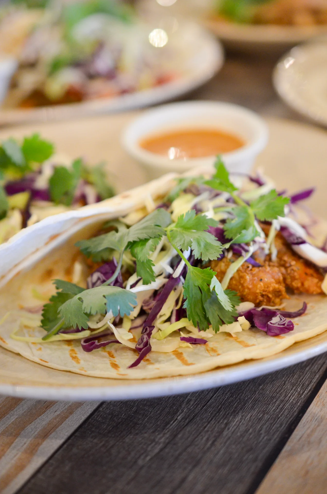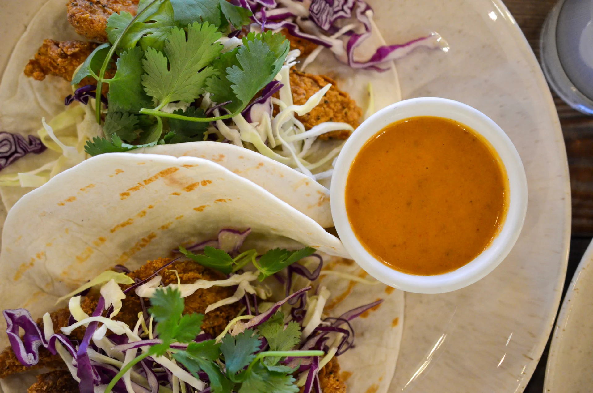 2 Tacos, Shredded Cabbage, Fresh Cilantro & Chipotle Mango Sauce