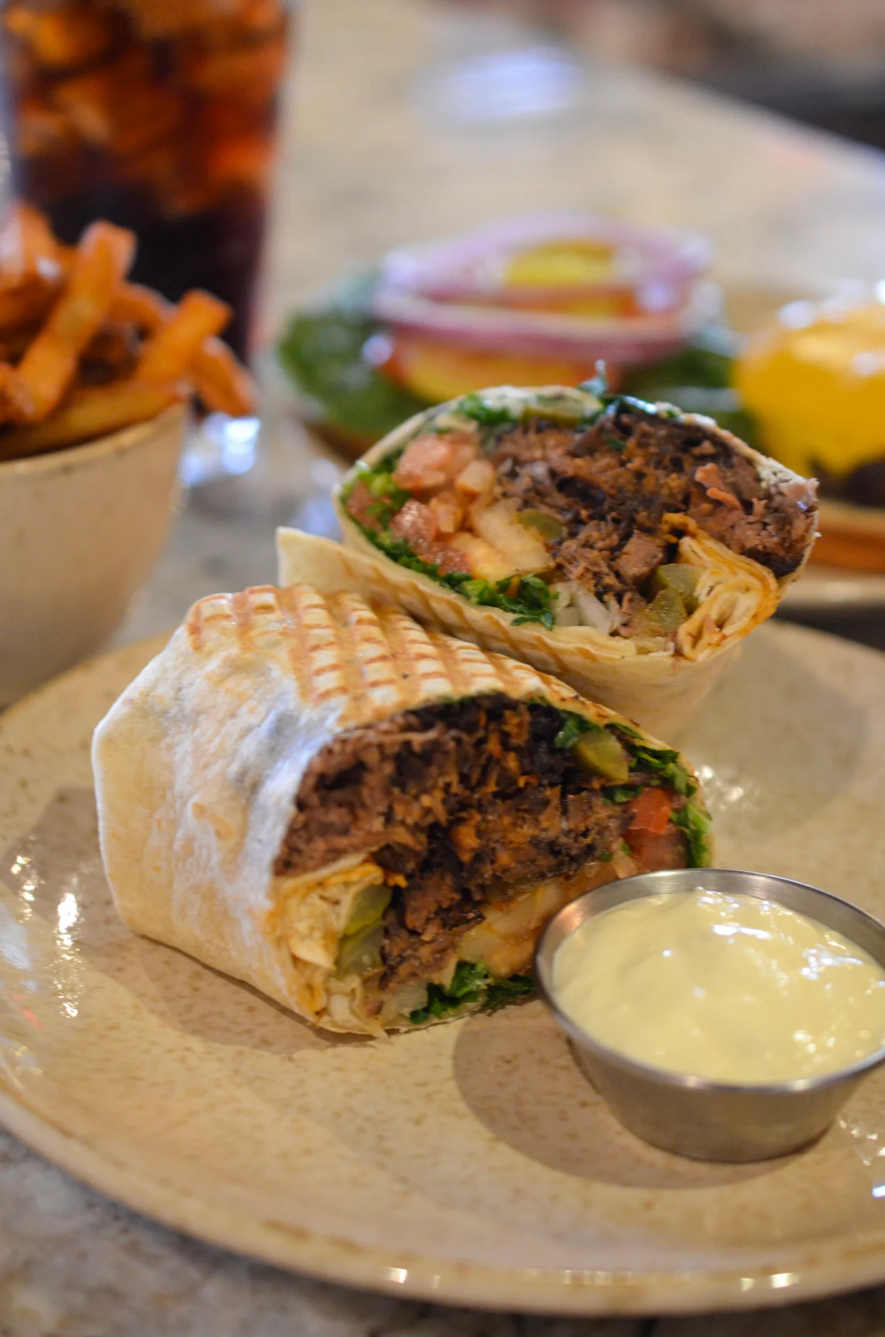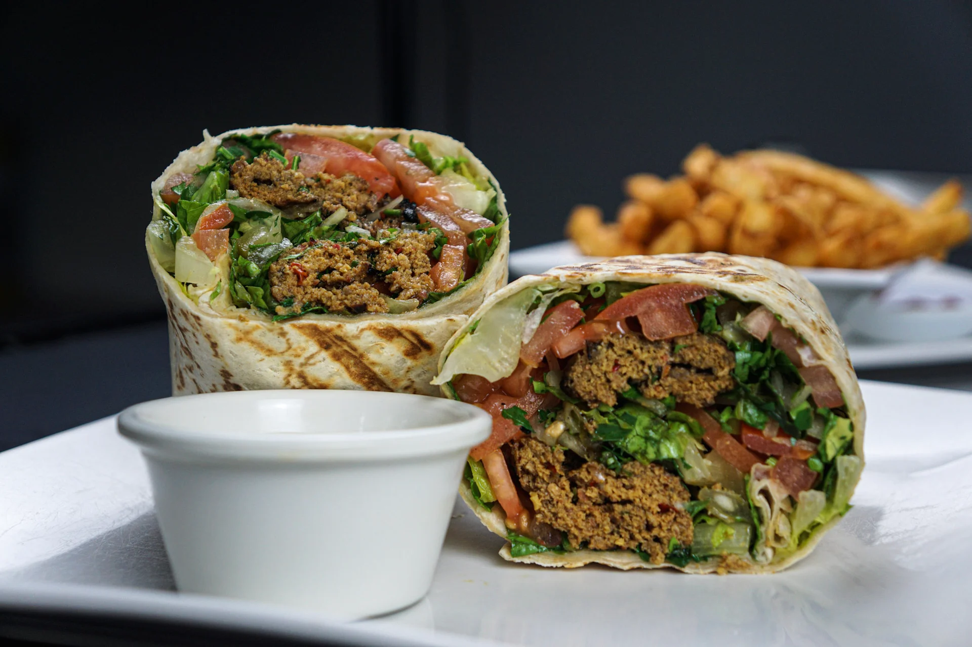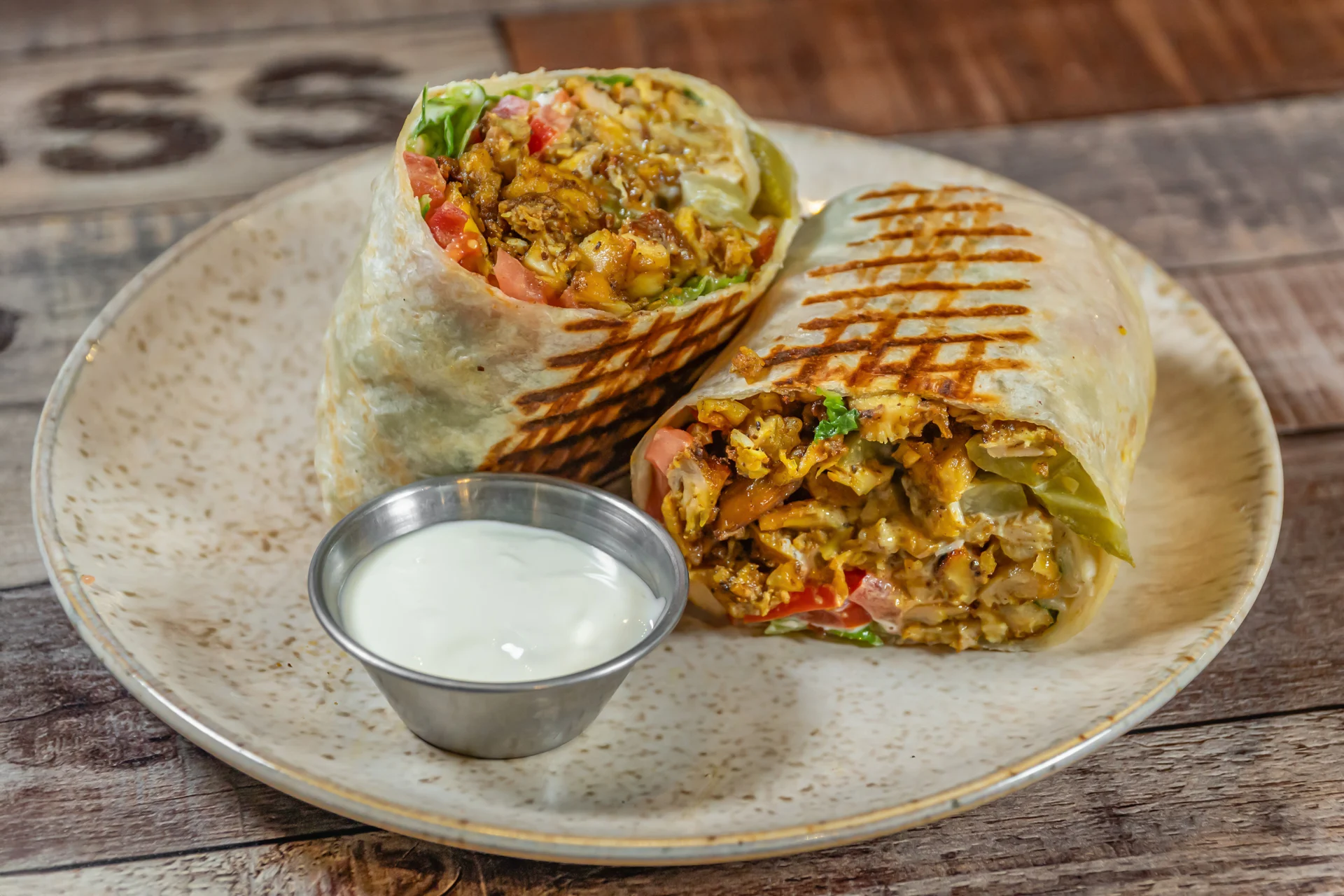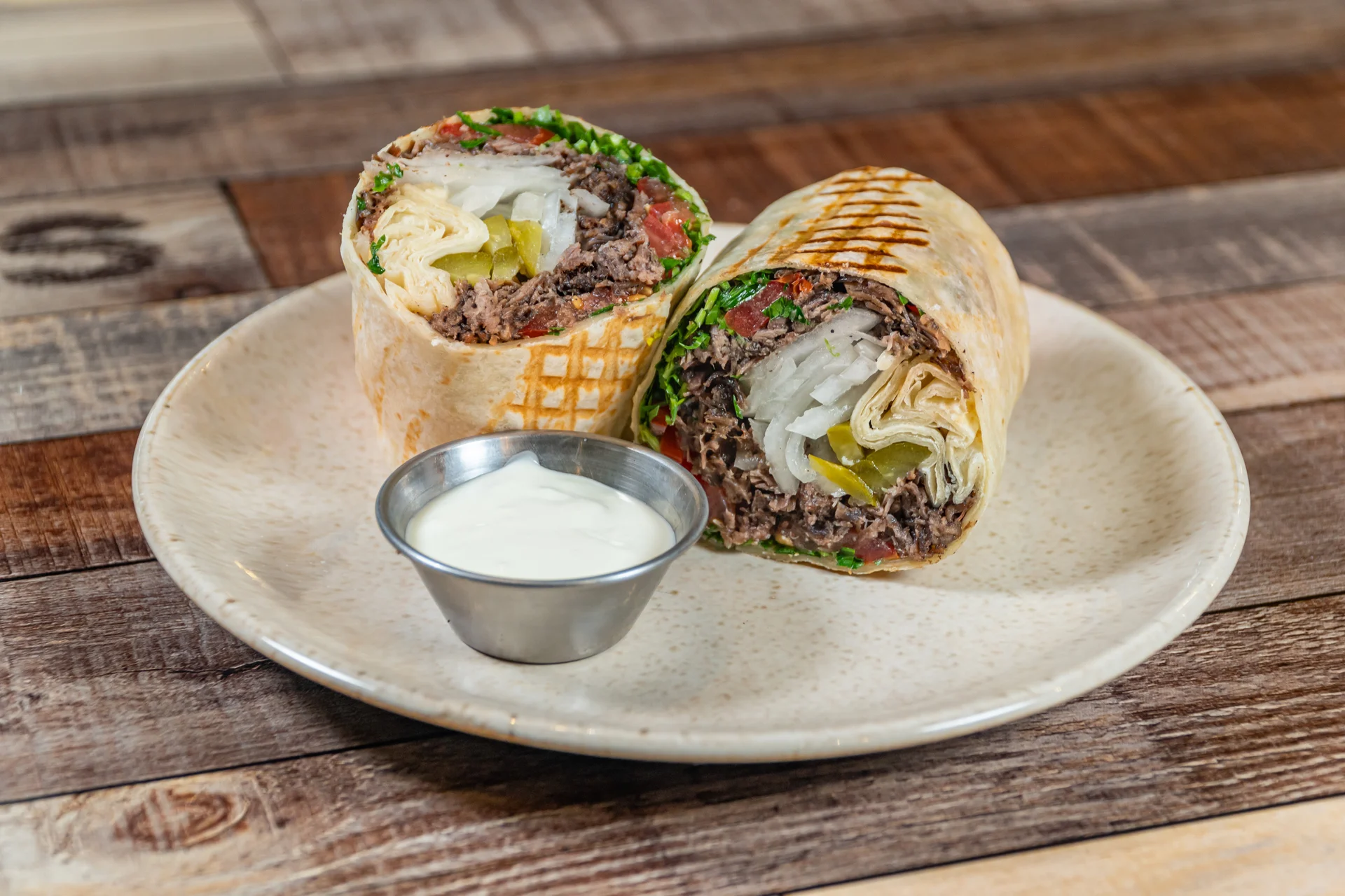 Italian Parsley, Tomato, Onion & Cucumber Pickles Wrapped in a Soft Flour Tortilla Served w/ Creamy Garlic Sauce