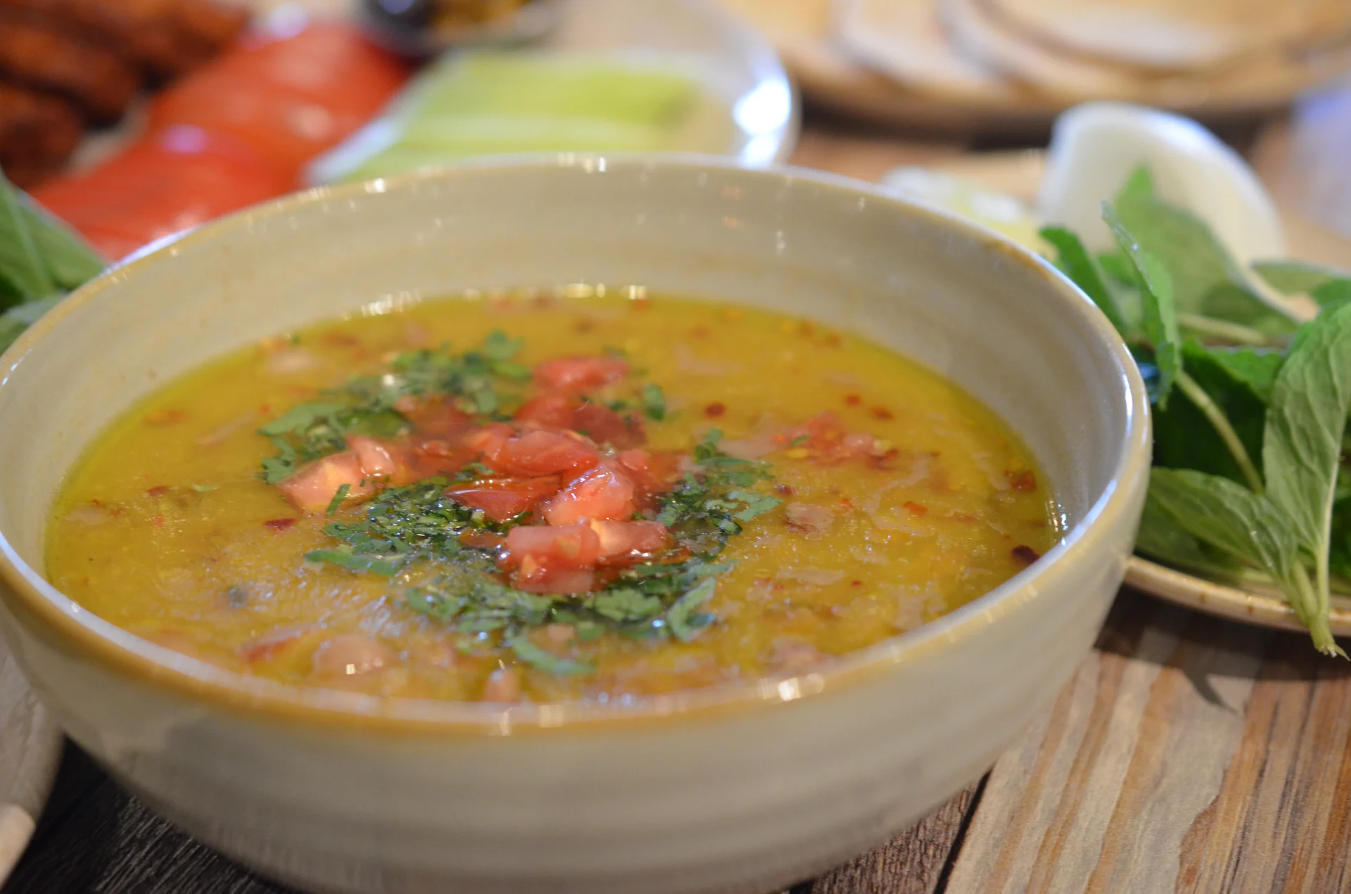 Cooked Fava Beans, Olive Oil, Parsley, Tomatoes w/ Mint & Onions