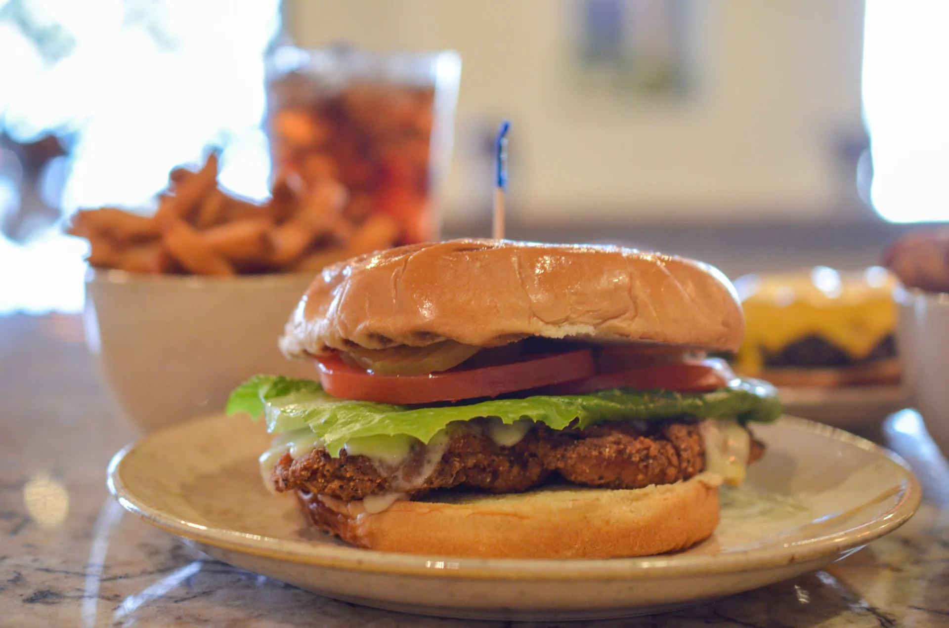 Deep Fried Breaded Chicken Breast, Lettuce, Tomato, Pickles, Melted Pepper Jack Cheese & Chipotle Mayo On Toasted Brioche Bun
