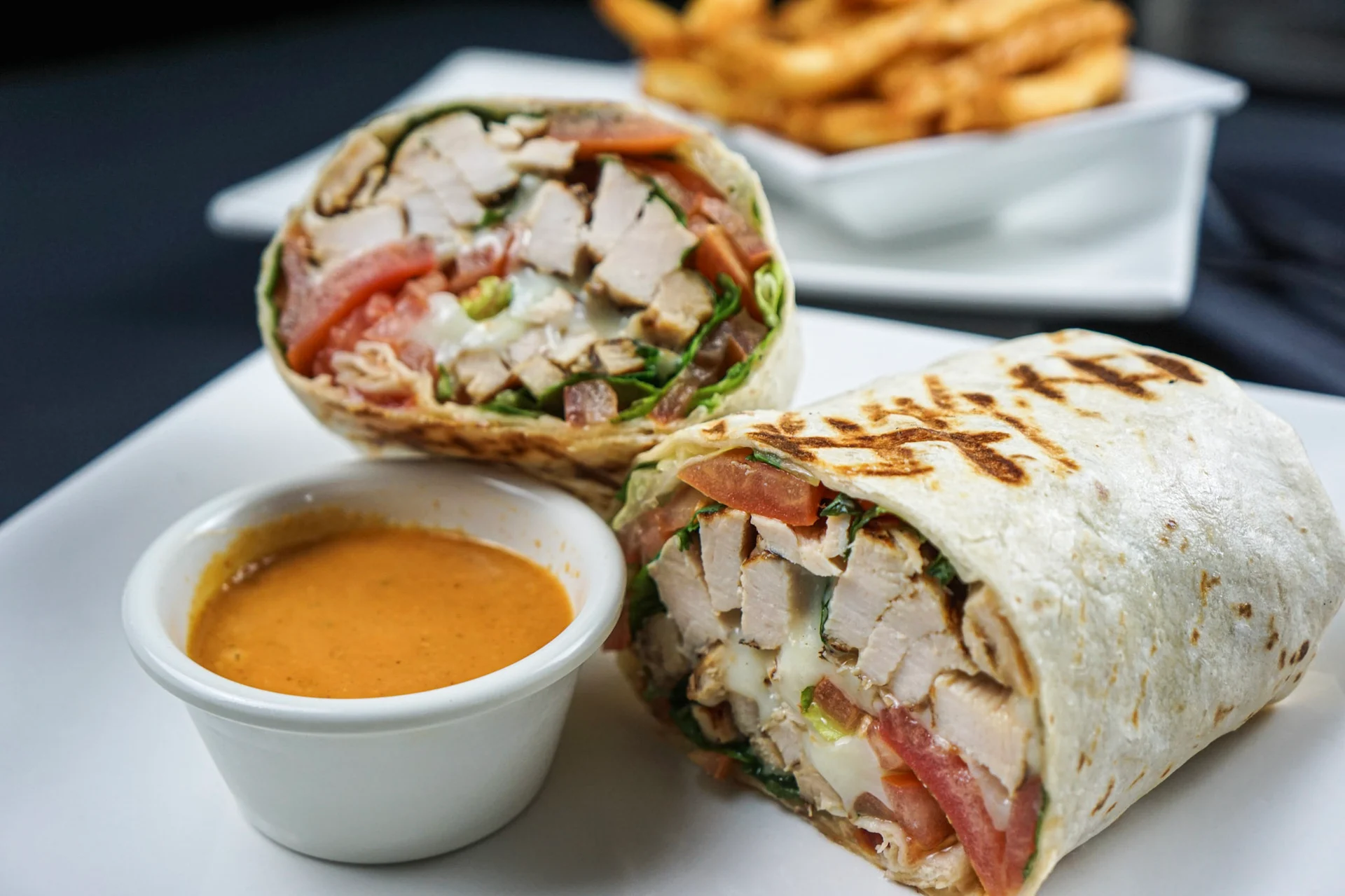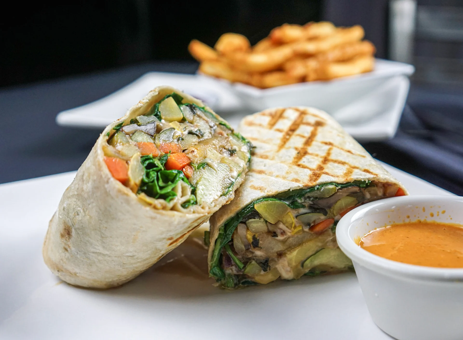 Sautéed Veggies, Fresh Baby Spinach, Melted Mozzarella Cheese Wrapped In A Soft Flour Tortilla & Served With Spicy Chipotle Mango Sauce