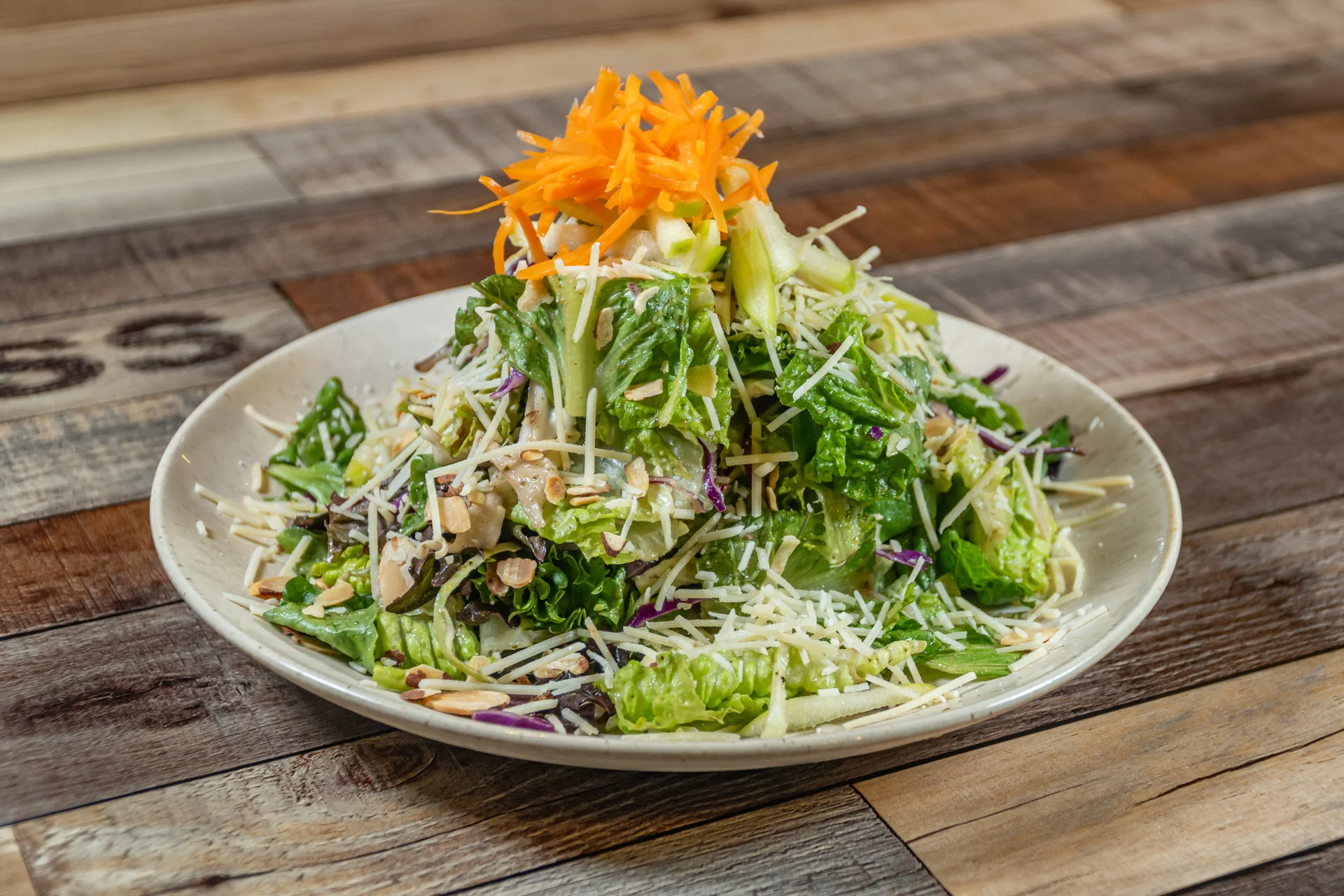 Mixed Greens, Carrots, Granny Smith Apples, Tossed In A Creamy & Tangy Pomegranate Buttermilk Dressing, Topped w/Toasted Almonds & Parmesan Cheese
