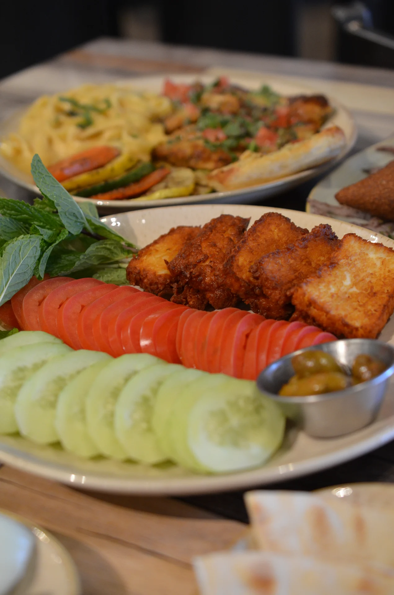 Haloumi Cheese W/Sliced Cucumber, Sliced Tomato, Fresh Mint & Fresh Pita Bread