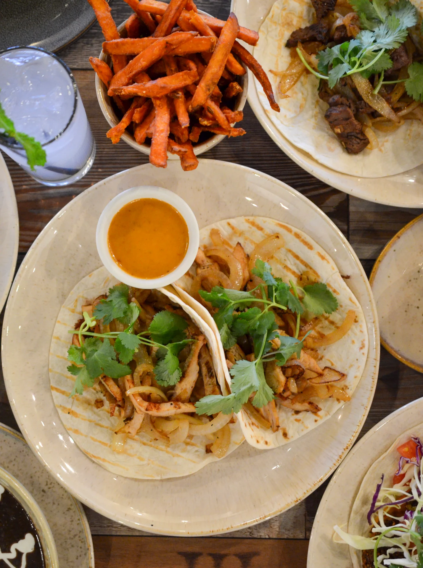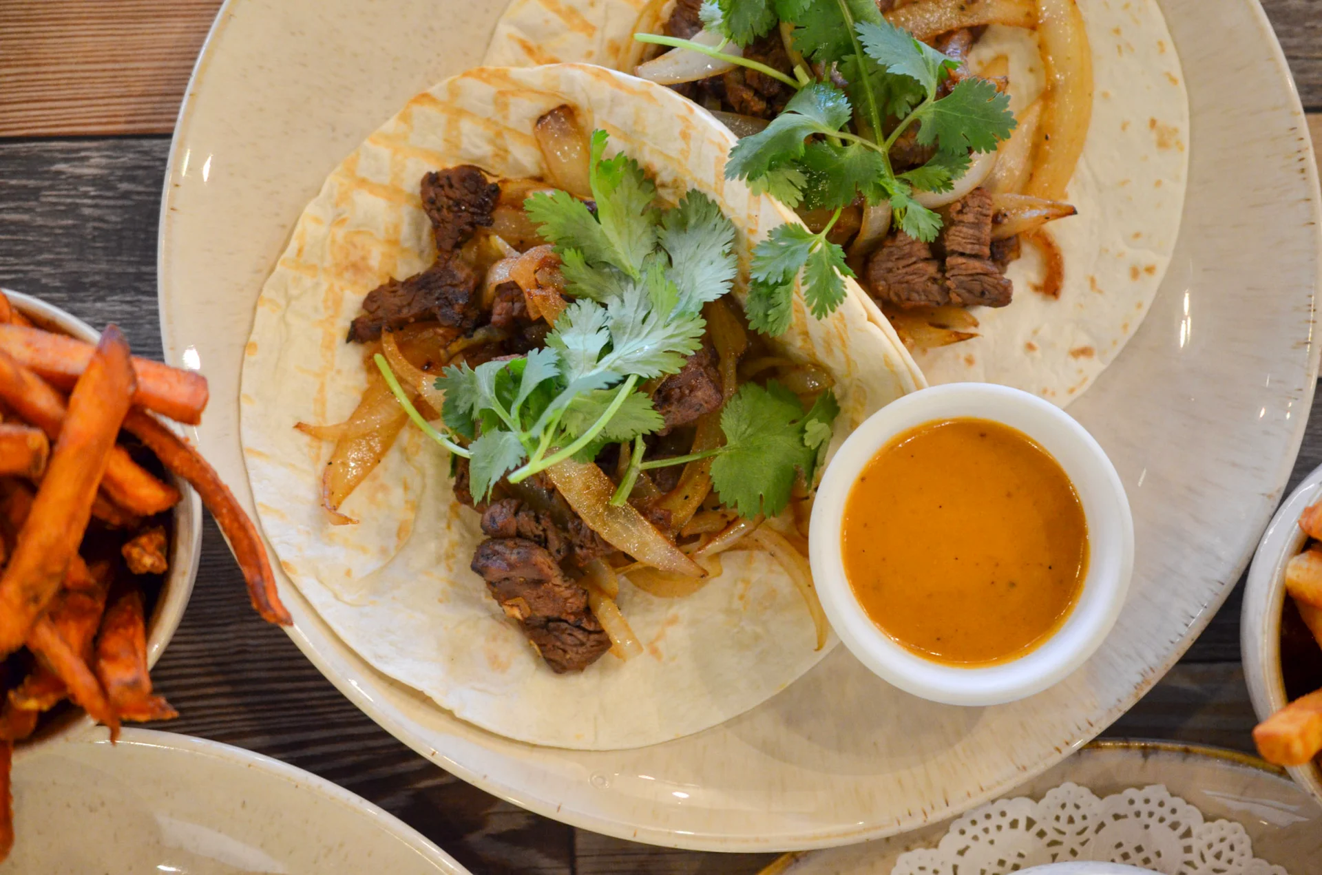 2 Tacos, Sauteed Onions, Fresh Cilantro & Chipotle Mango Sauce