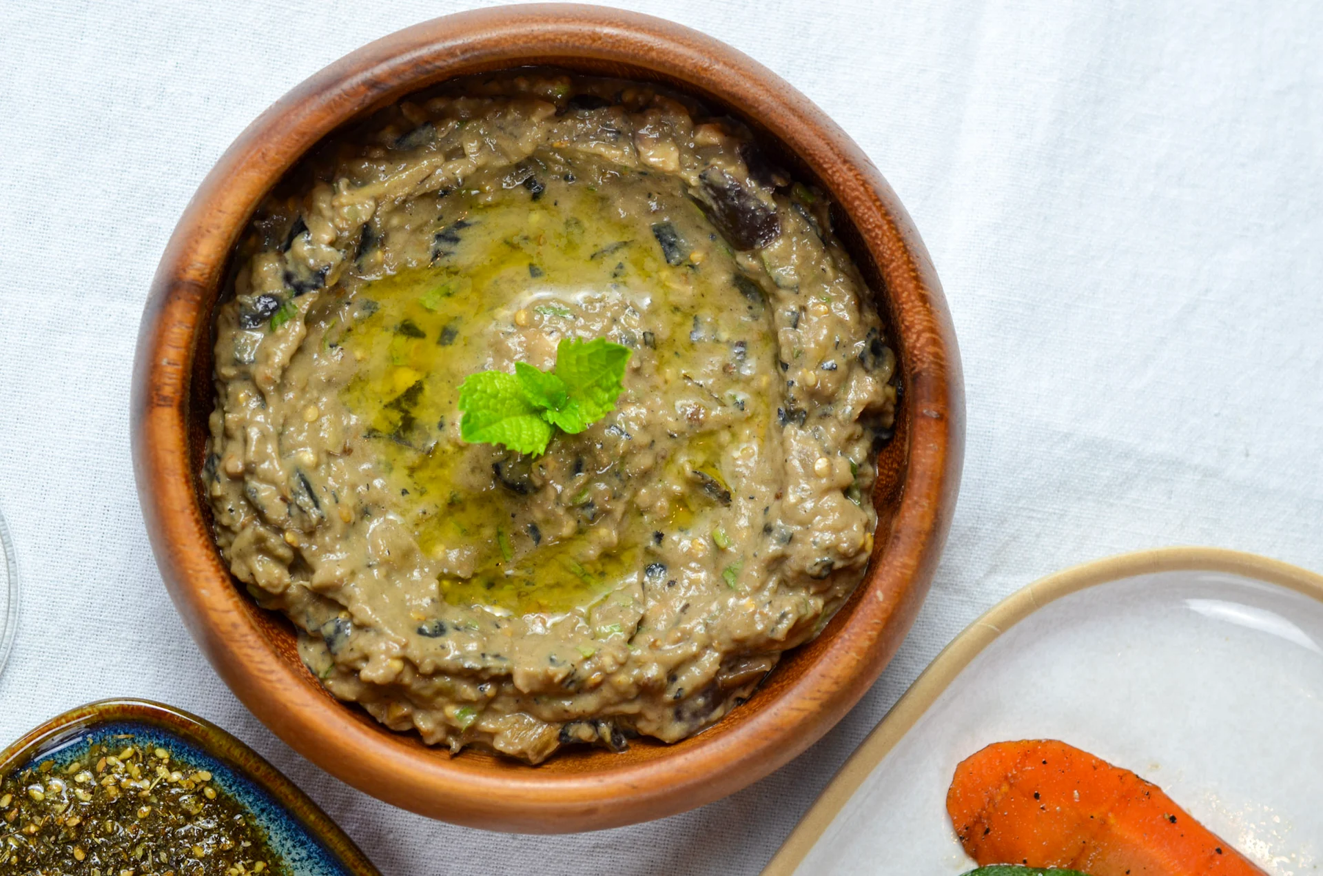 Roasted Eggplant & Walnut Puree Served With Soft Pita Bread