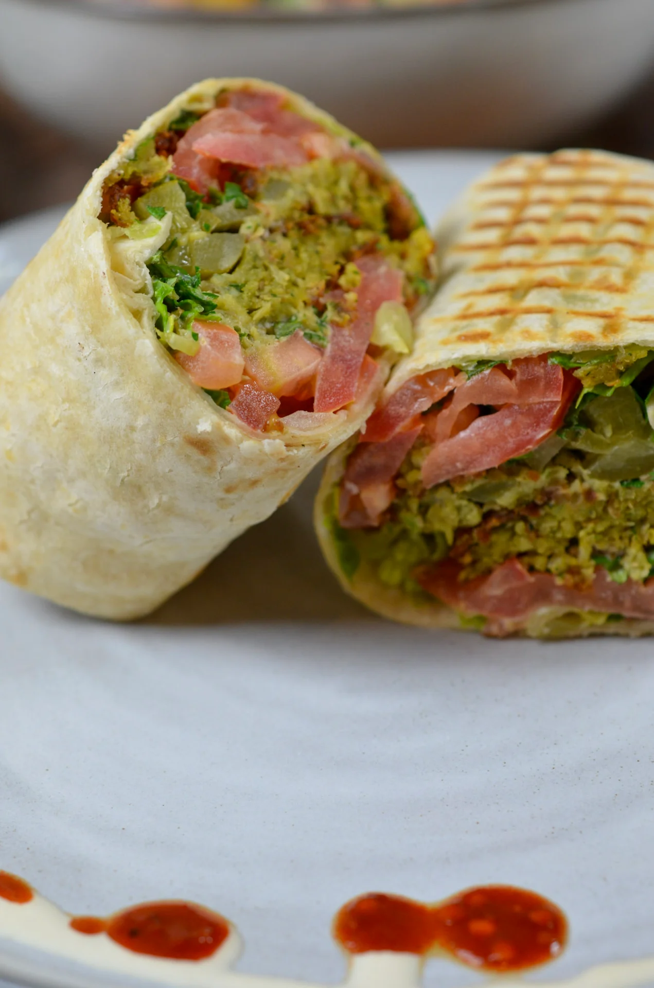 Lettuce, Tomato, Mint, Parsley, Pickles & Tahini Sauce Wrapped In A Soft Flour Tortilla