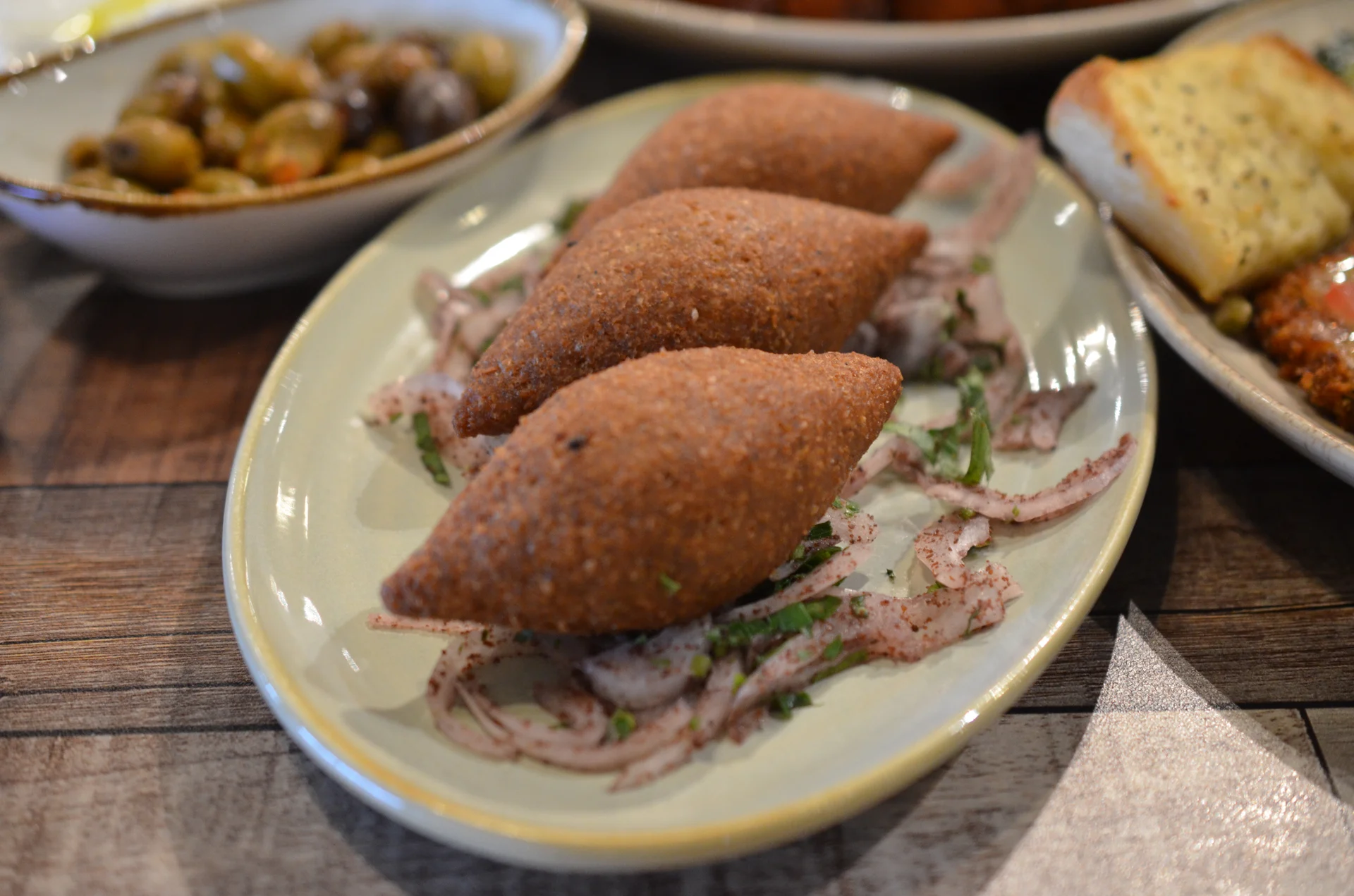 3 Fried Spiced Ground Beef & Cracked Wheat Balls Stuffed w/Ground Beef & Nuts