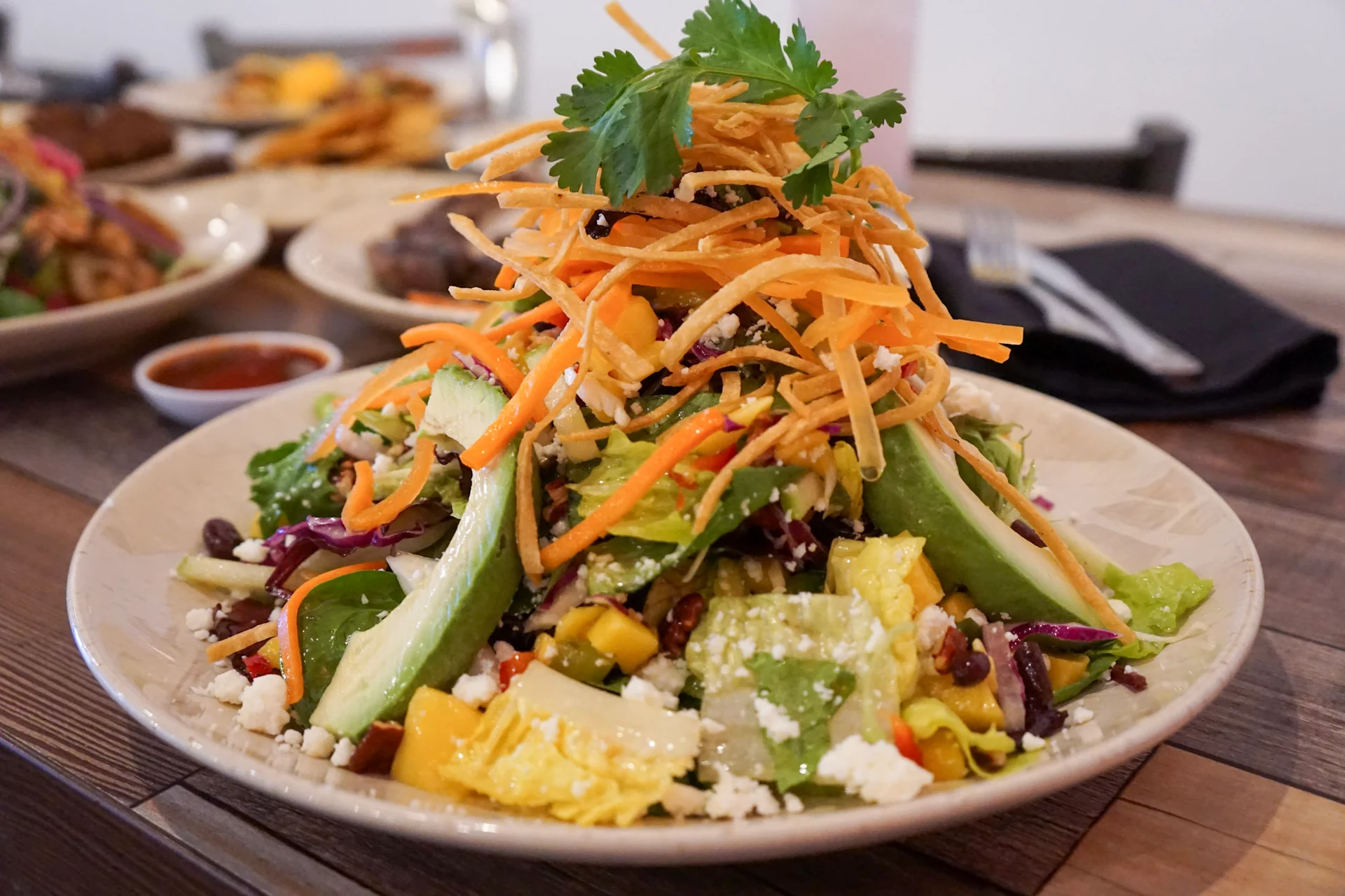 Mixed Greens, Fresh Mango, Bell Peppers, Black Beans, Green Apple, Red Onion, Carrots, Avocado, Feta Cheese & Roasted Pecans Tossed In Extra Virgin Olive Oil & Pineapple Dressing