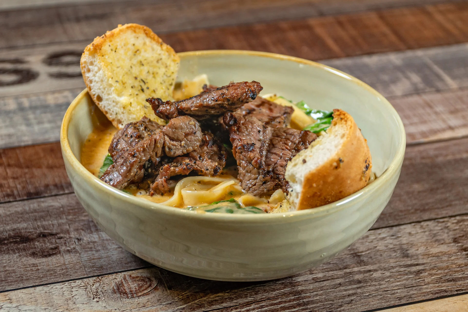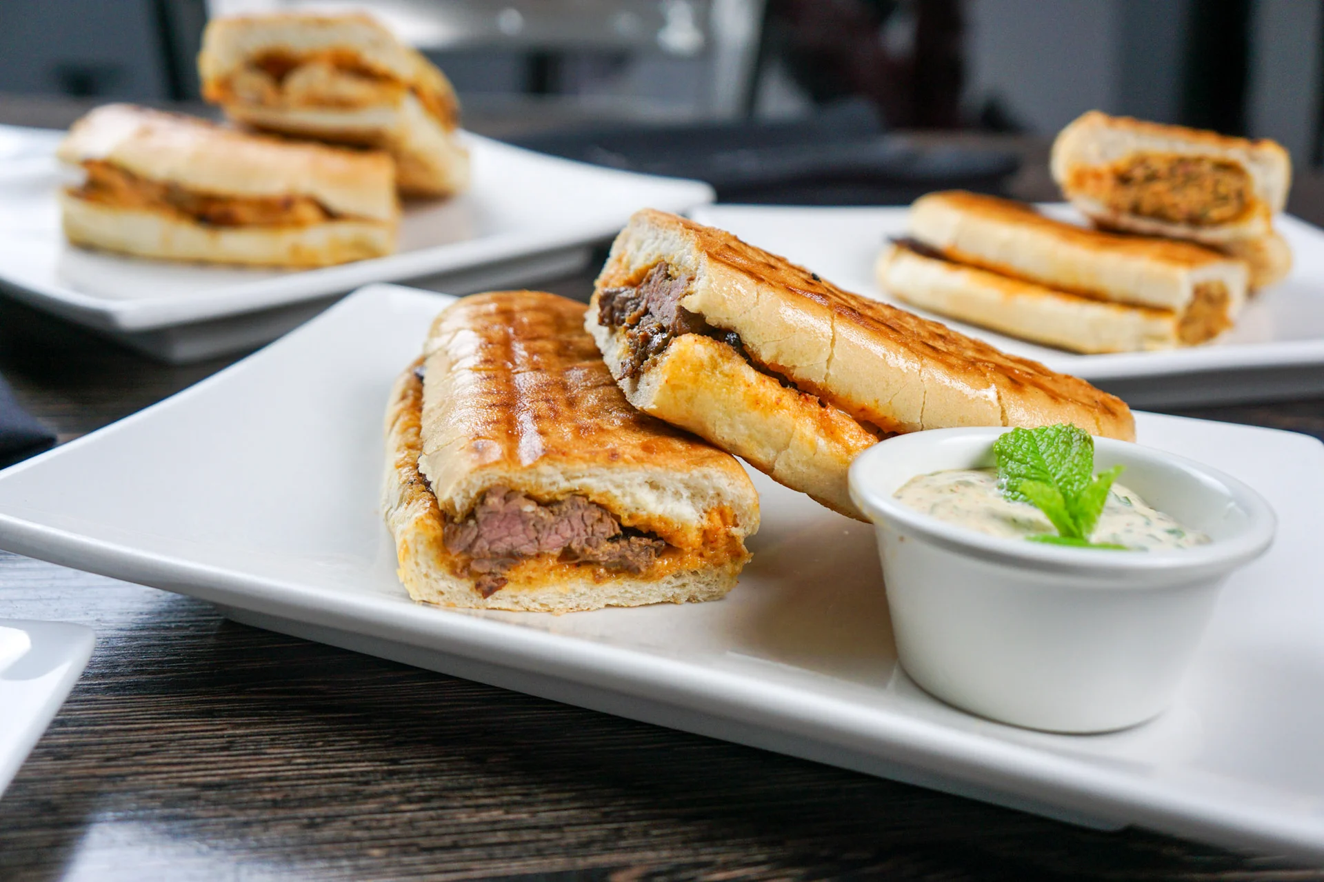 Beef Tenderloin Medallions, Toasted Hoagie Bread, Smokey & Spicy Chipotle Mayo, Sliced Tomato & Fresh Cilantro Served with Creamy Cilantro Garlic Sauce.