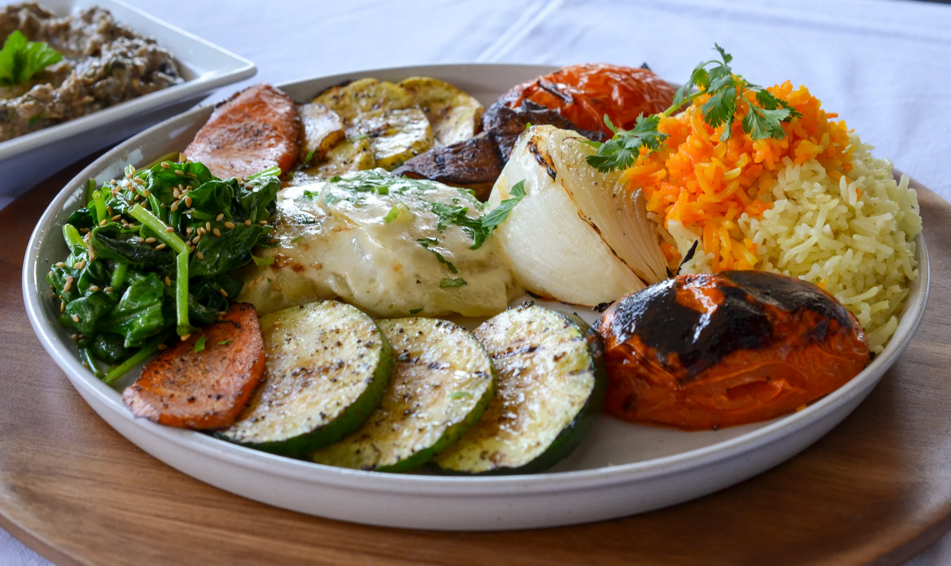 Grilled Tomato, Onion, Zucchini, Yellow Squash, Carrots, Portabella Mushroom, Sautéed Baby Spinach, Saffron Basmati Rice & Creamy Scalloped Potatoes