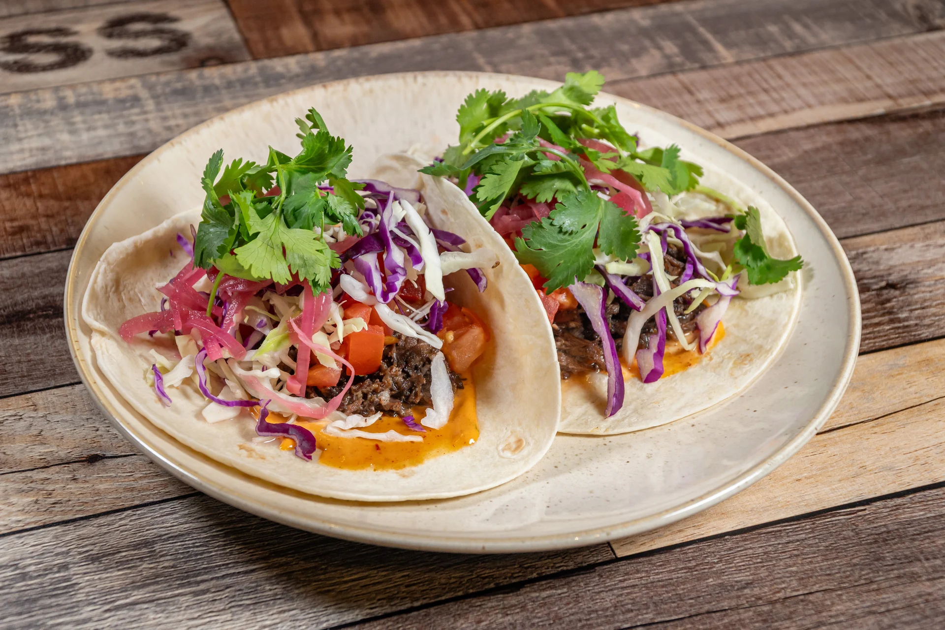 2 Tacos, Tomatoes, Cabbage, Cilantro, Chipotle Mayo & Tahini Sauce