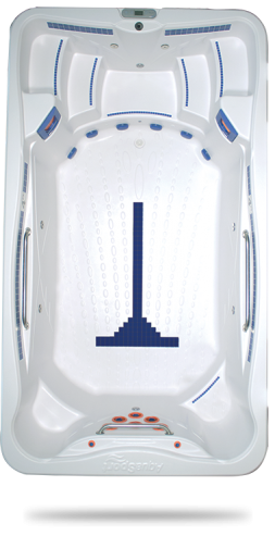 As the big brother to the AquaFIT SPORT® swim spa, the AquaFIT PRO® provides a place for an amazing workout and a place to relax and have fun. Patented optimounts for resistance bands offer the safest, strongest and most versatile workout and powerful swim spa jets are positioned to give you lift and create a challenging swim. After your workout, cool down with powerful massage jets in the Max Therapy seat equipped with the patented, ultra-relaxing Jet Therapy® pillow. Enjoy all these features in crystal clean water with D1′s UltraPure water management system.