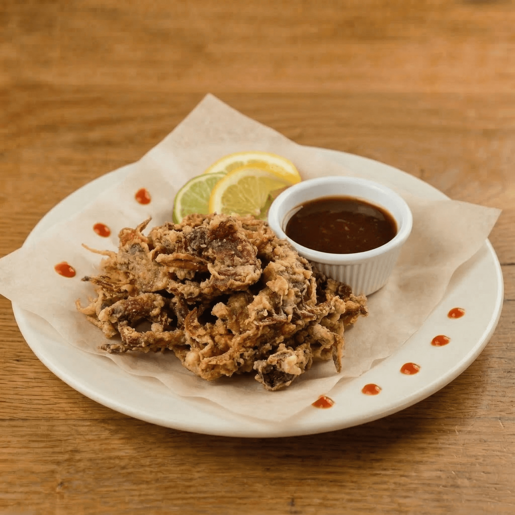 Lightly seasoned & fried soft shell crab. Served with a tangy plum sauce
