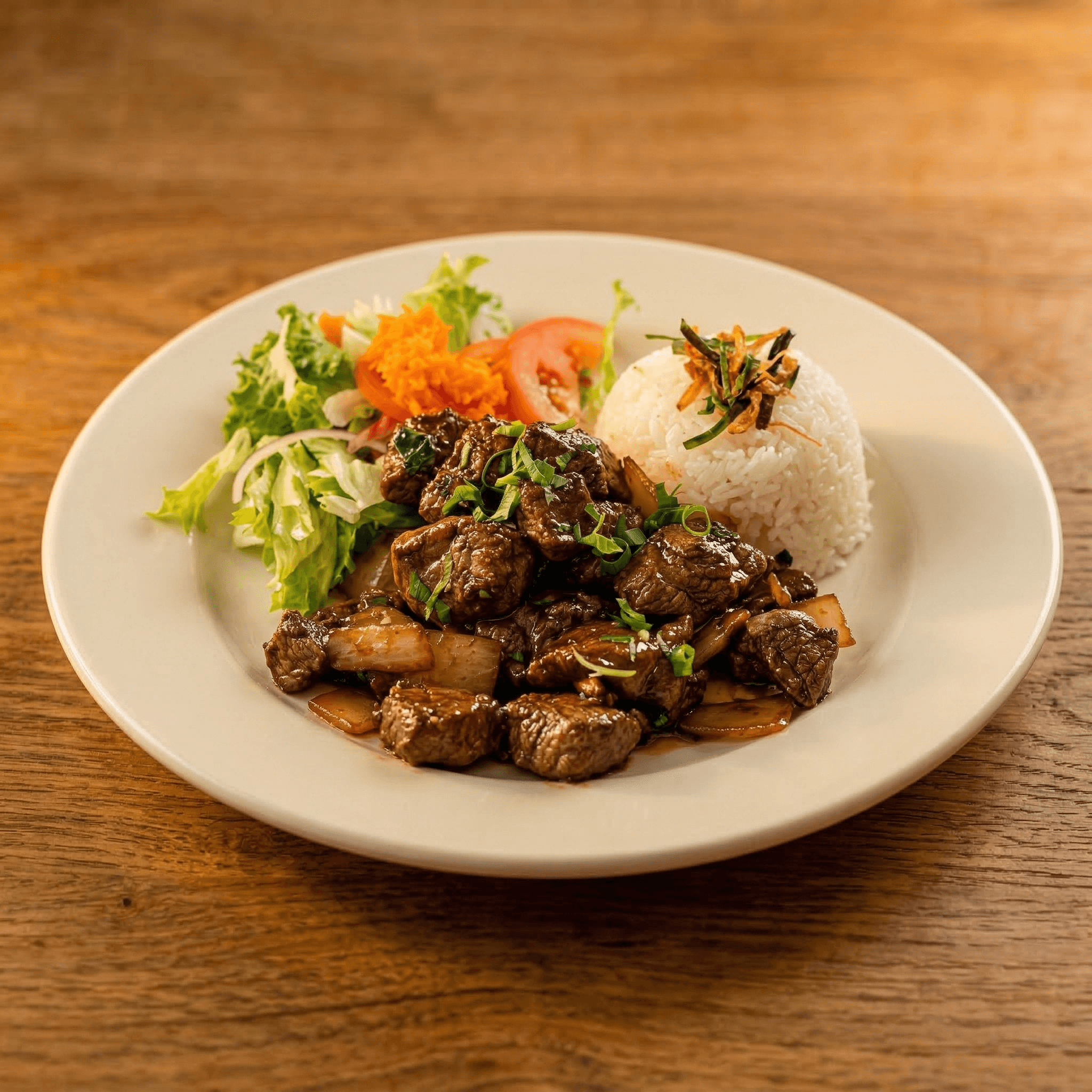 Cubes of tenderloin steak seared with garlic & butter sauce. Served beside a bed of salad with our carrot ginger dressing or steamed veggie