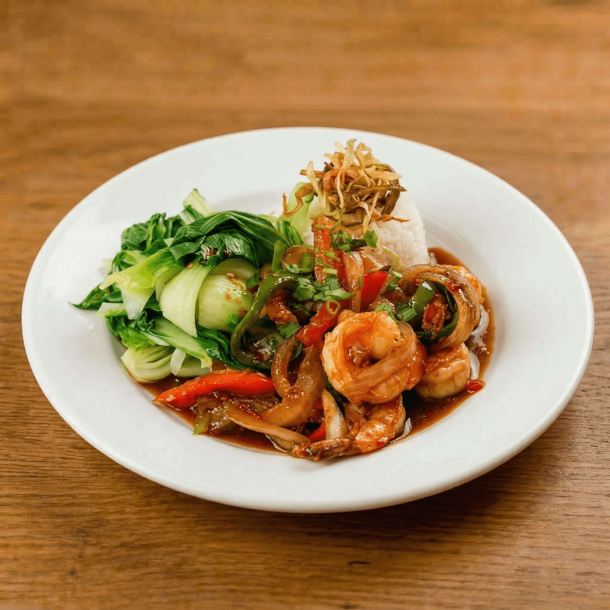 Your choice of protein sautéed with red & green bell peppers, white onion, minced lemongrass & red chili. Sub beef or shrimp for an additional charge